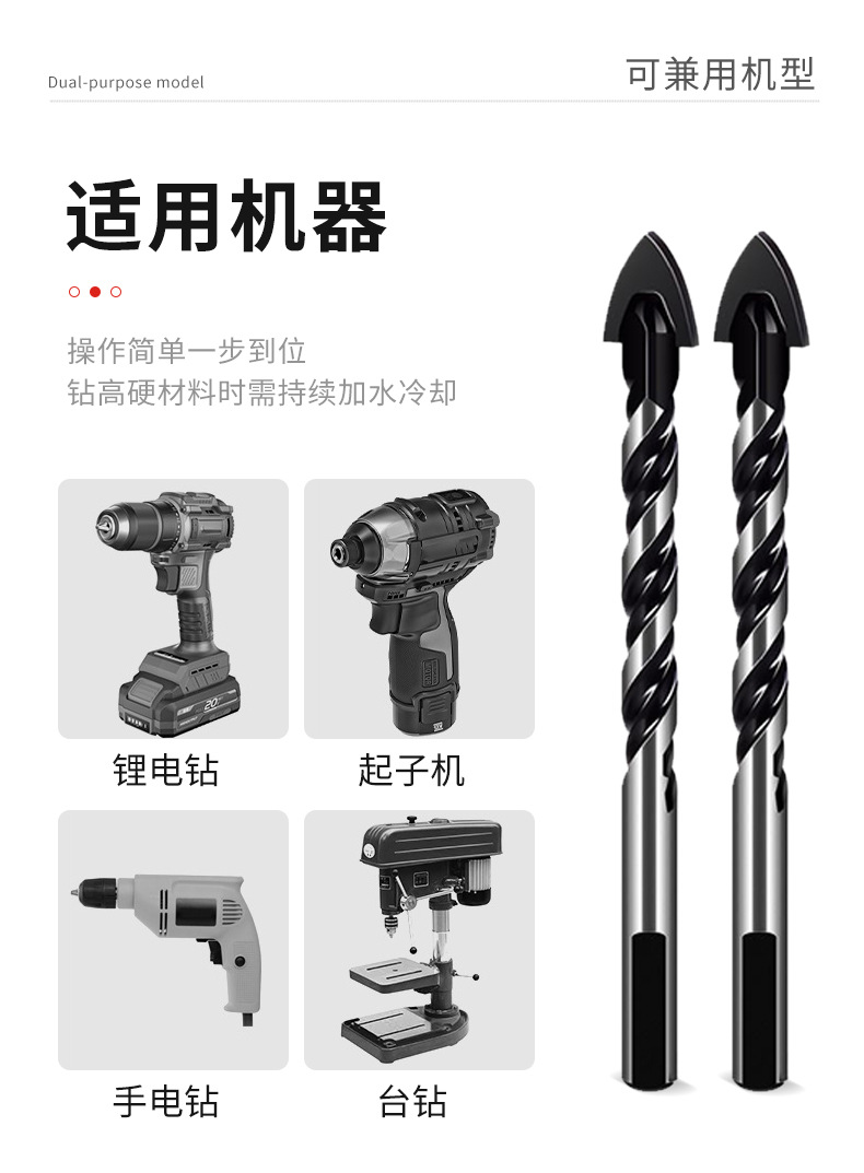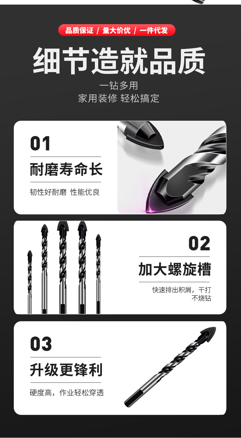 Aleación de cuatro cuchillas de perforación cruzada taladro de azulejo cruz overlord taladro triángulo de cerámica taladro de vidrio abridor de agujeros al por mayor