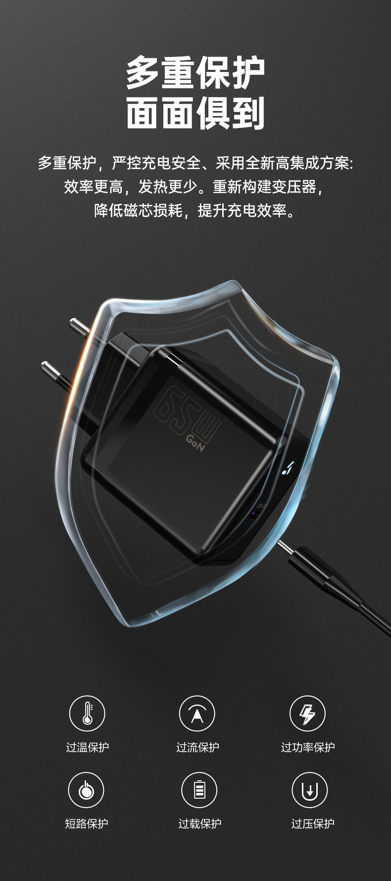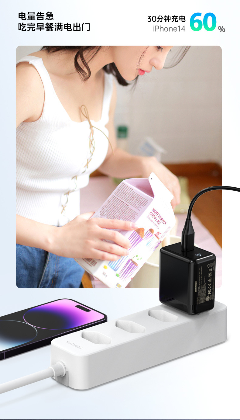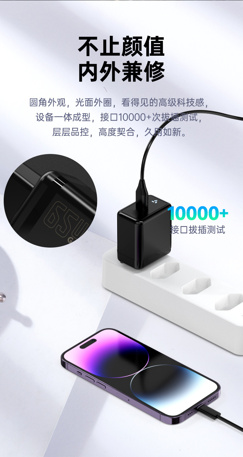65W cargador de nitruro de galio estándar europeo cargador rápido de puerto C único estándar coreano certificado estándar europeo PD cargador rápido para teléfono móvil