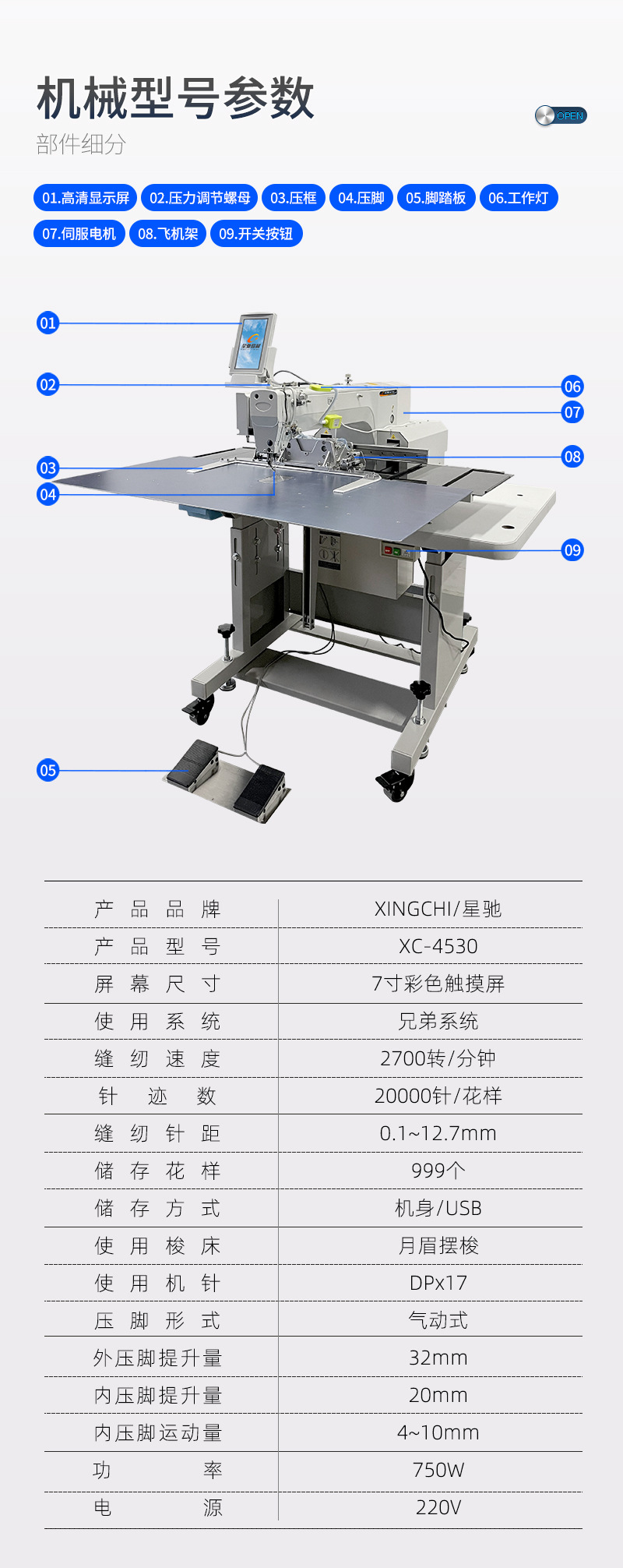 Xingchi marca máquina de coser automática 4530 ordenador patrón tela cuero logo escuela swing Shuttle flor prototipo