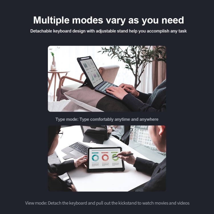 3.保险杠组合键盘外壳是一个多功能键盘盒,具有可调节支架,可移动键盘和触控板,使其方便键入,查看,读取和素描。另外,让您享受灵活的操作体验。