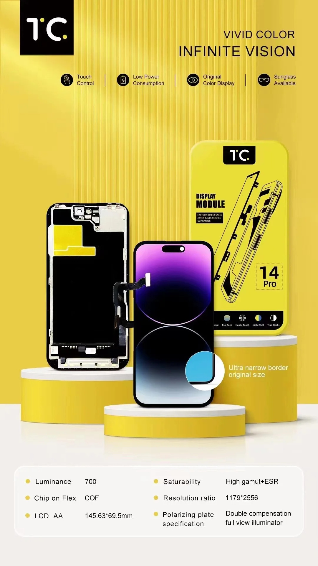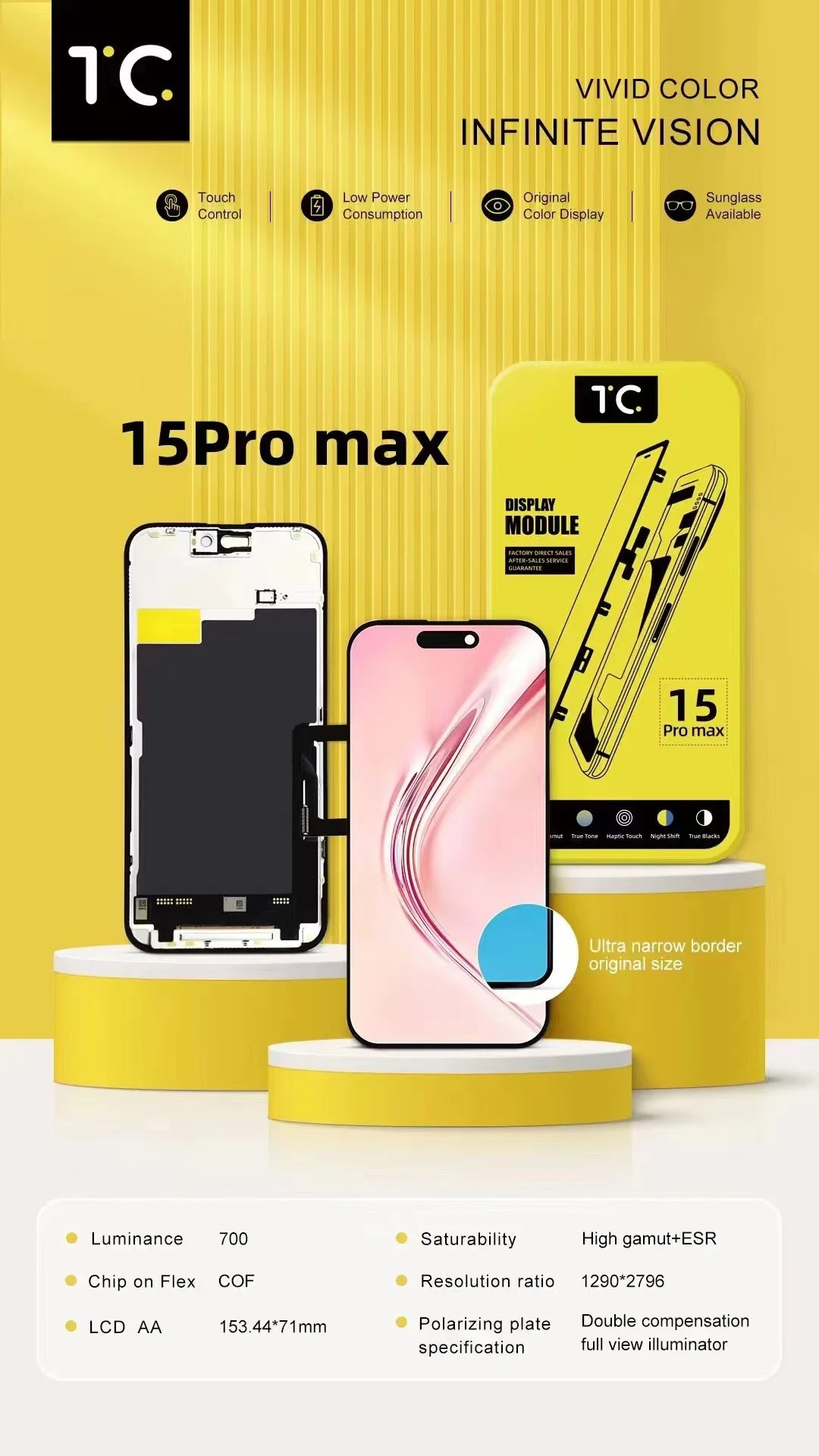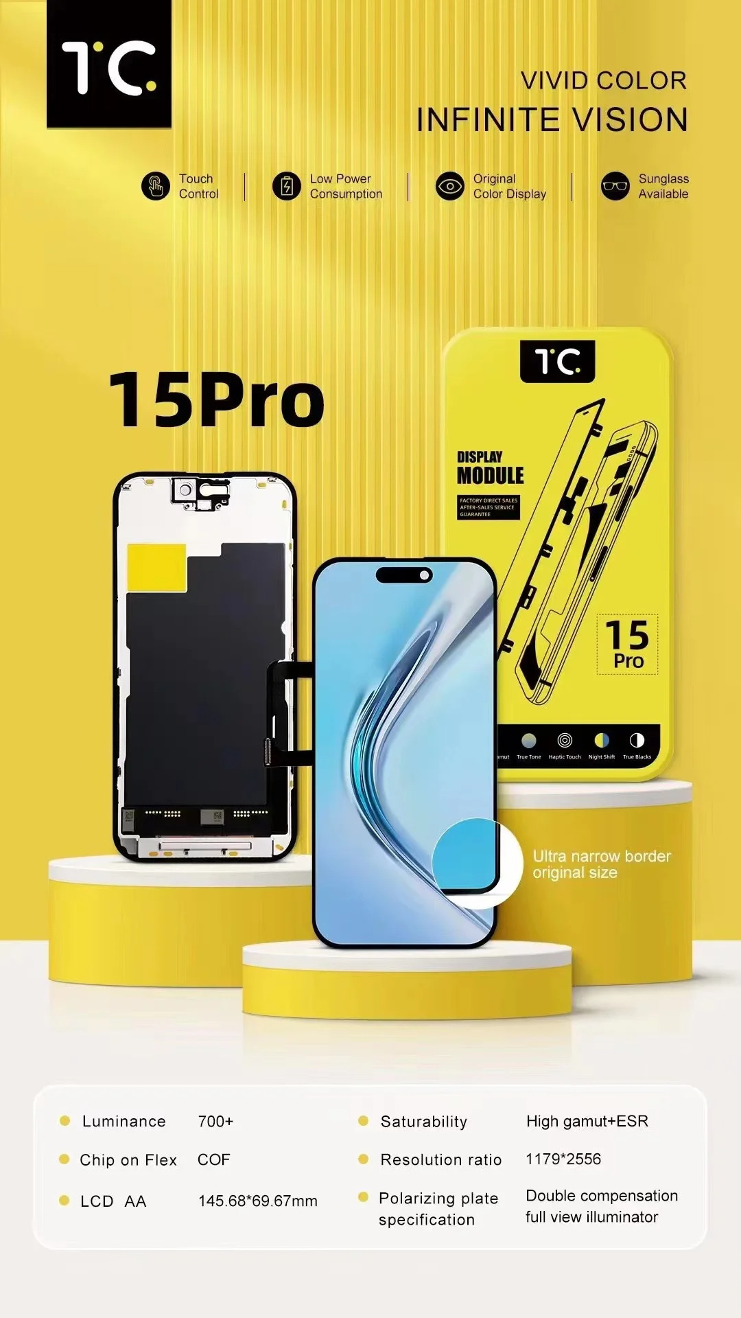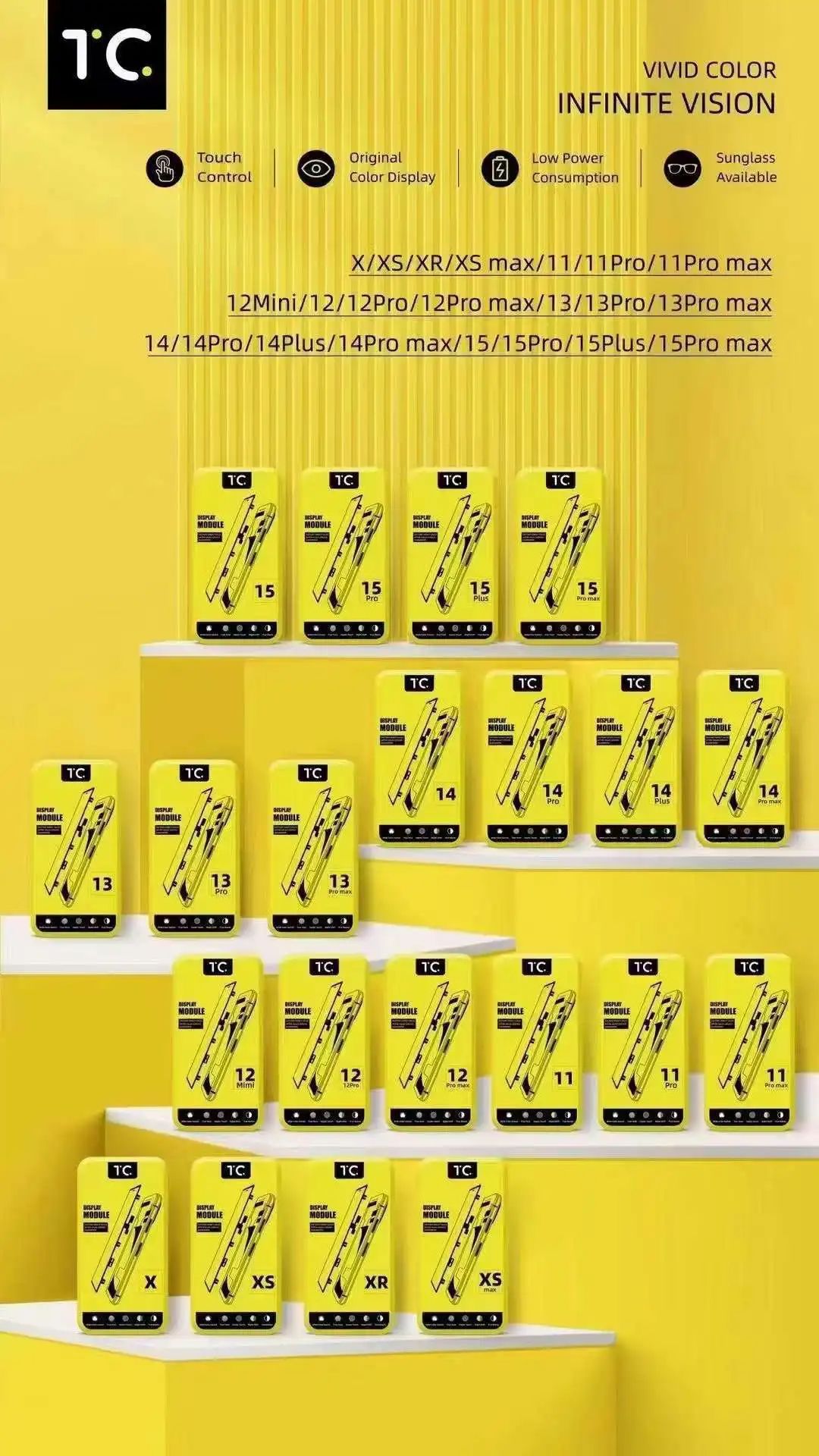 | Modelo aplicable | 13 Pro ( INCELL FHD ),13 Pro Max ( INCELL FHD ),14 Pro ( INCELL FHD ),14 Pro Max ( INCELL FHD ),15 ( INCELL FHD ),15 Plus ( INCELL FHD ),15 Pro ( INCELL FHD ),15 Pro Max ( INCELL FHD ),13 Pro ( INCELL HD+ ),13 Pro Max ( INCELL HD+ ),14 Pro ( INCELL HD+ ) |