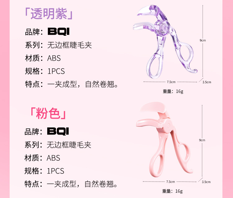 Clip de pestañas sin bordes BQI, modelado duradero, artefacto rizado de pestañas de gran angular parcial, clip de ojo portátil transfronterizo