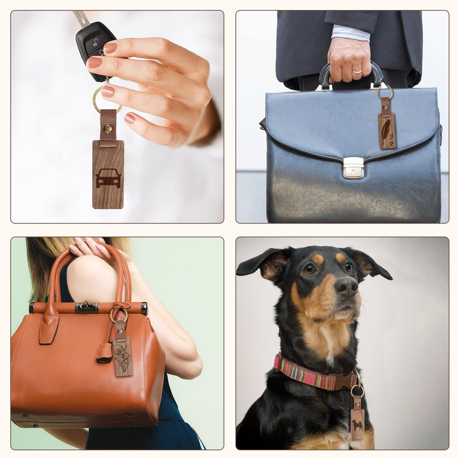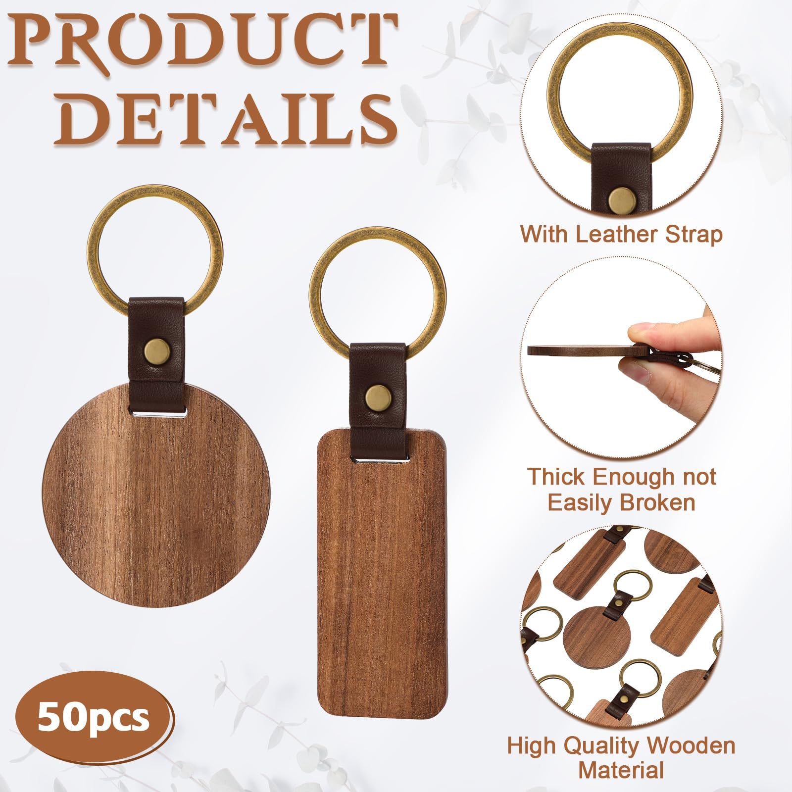 Llavero de nogal negro creativo haya nuevo llavero de madera con colgante de cuero con letras