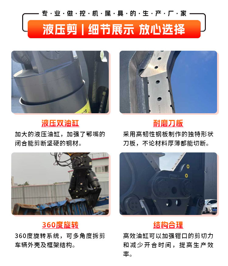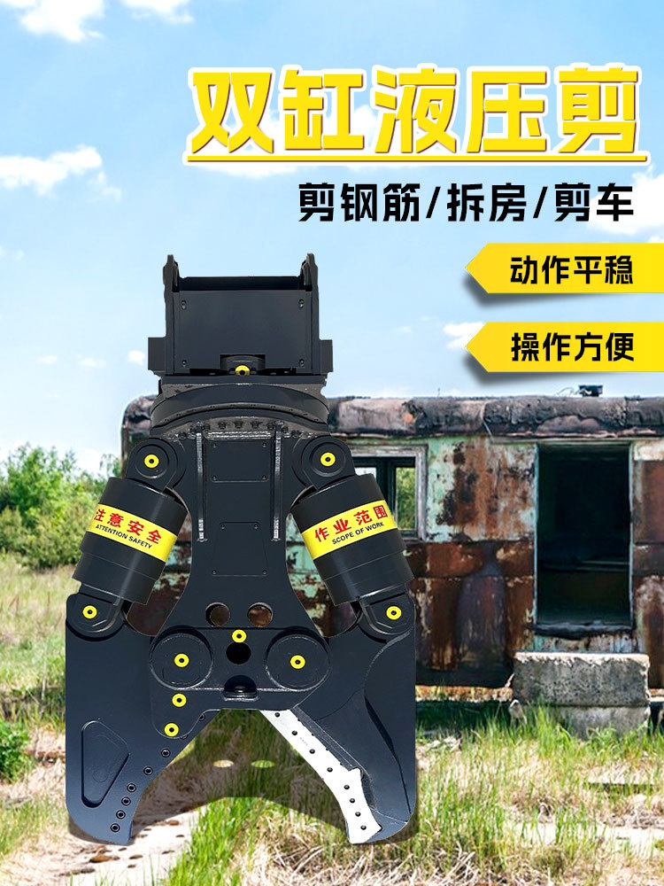 Excavadora cizallas hidráulicas de doble cilindro Cortar barras de acero Cortar barras de acero de desecho Cortar tijeras hidráulicas alicates de trituración giratorios de 360 grados