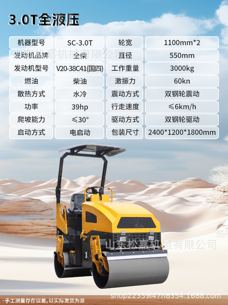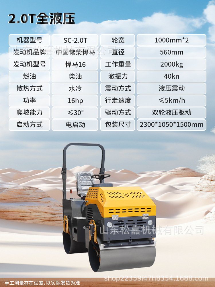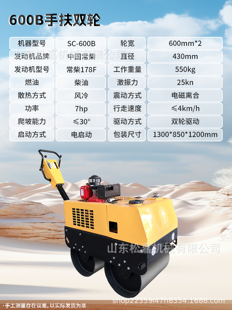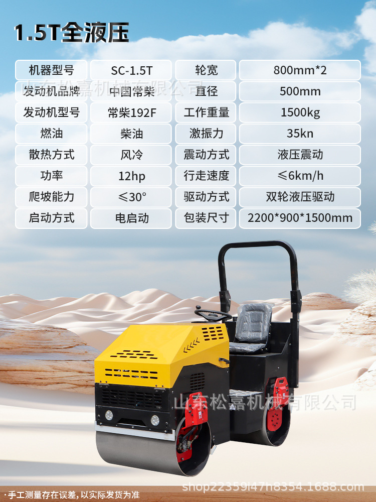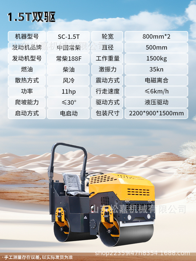 Rodillador pequeño 3 toneladas de vibración de doble rueda de acero tipo soporte manual 1 tonelada 2 toneladas de compactador de vibración de tierra en miniatura