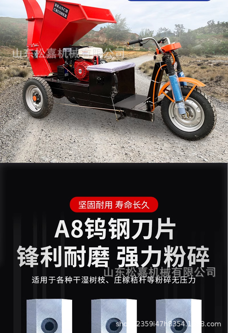 pequeño tipo móvil de rama de uva de árboles frutales de madera hierba trituradora de ramas de árboles domésticos