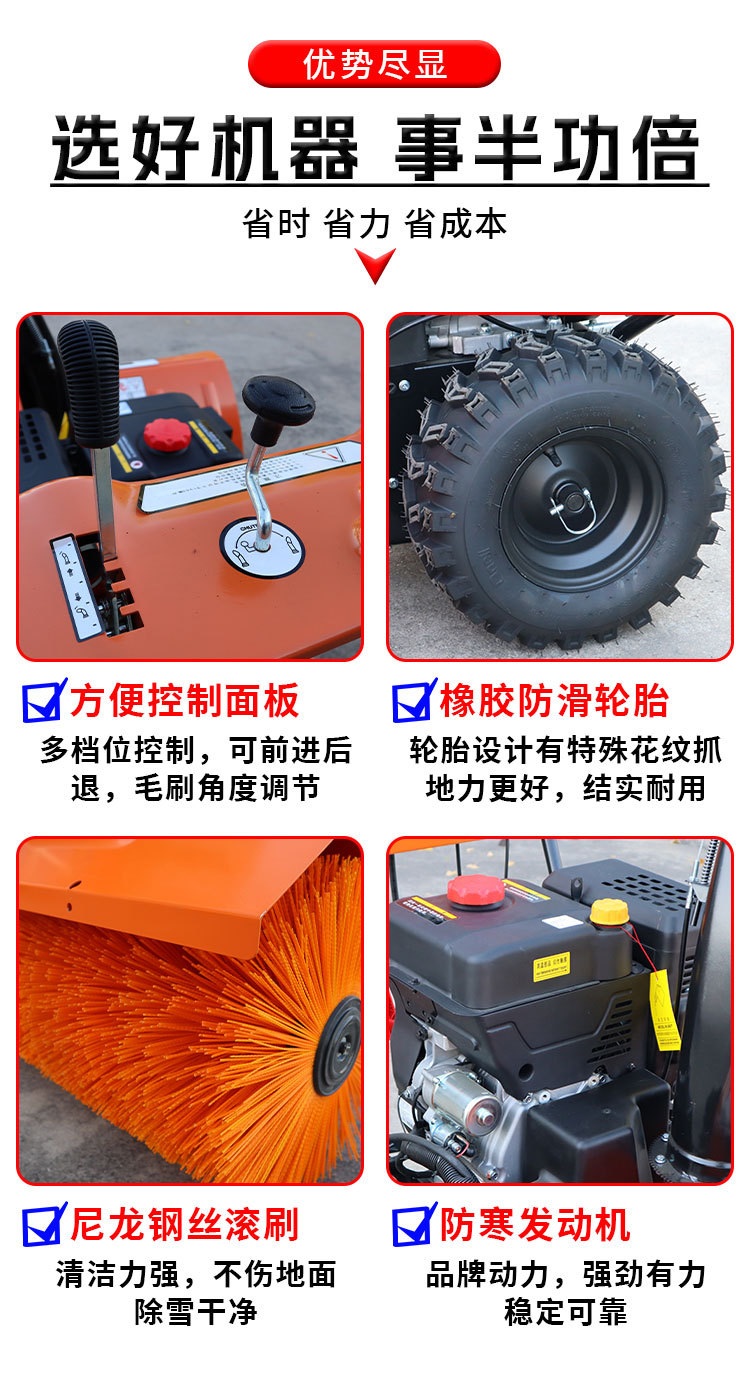 Combustible de cuatro ruedas barredora de nieve carro de playa modificado barredora de nieve multifuncional barredora de nieve sanitario municipal máquina de remoción de nieve