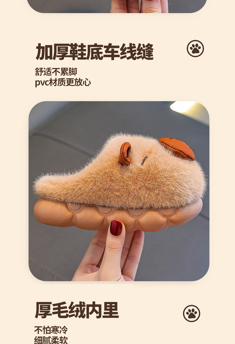 Capibara invierno zapatillas de algodón para niños, niños, niñas, calentamiento y peluche, bolsas de zapatos de algodón para niños, padres e hijos, zapatos de talón para niños