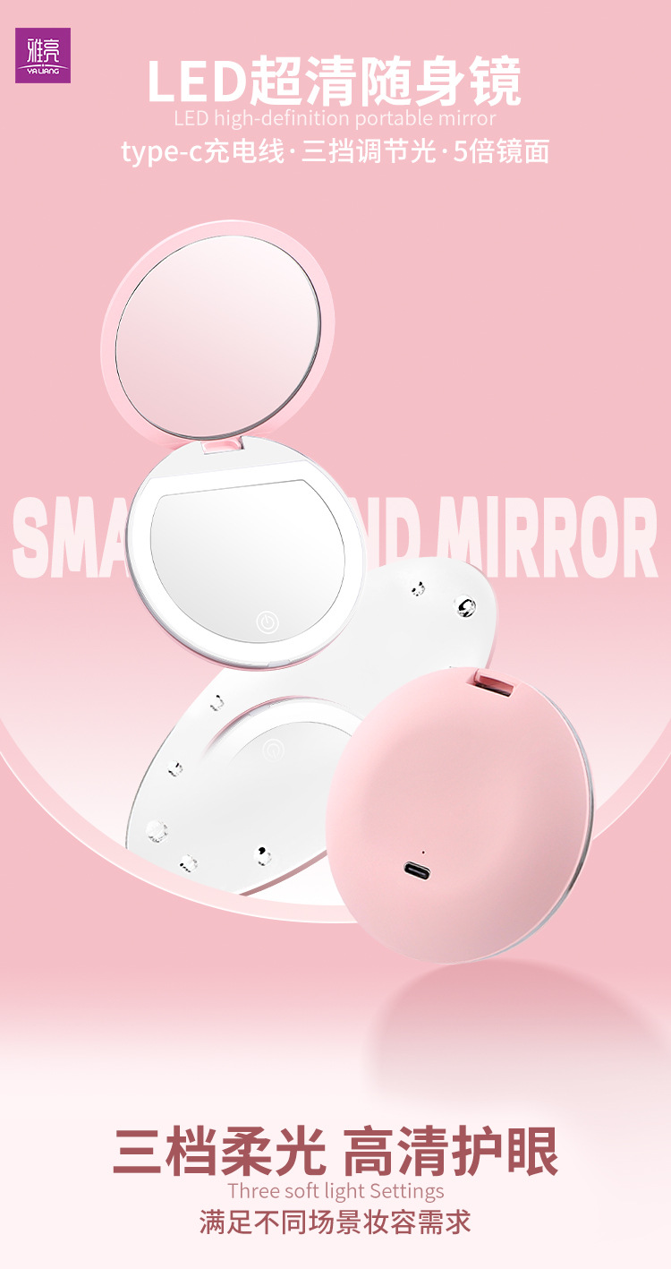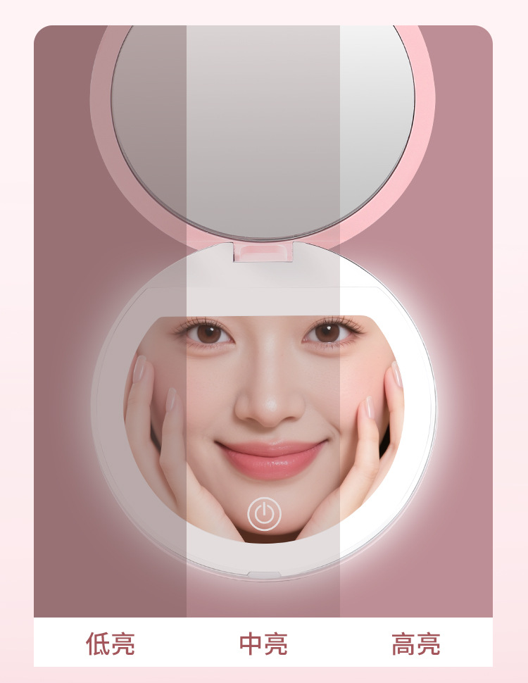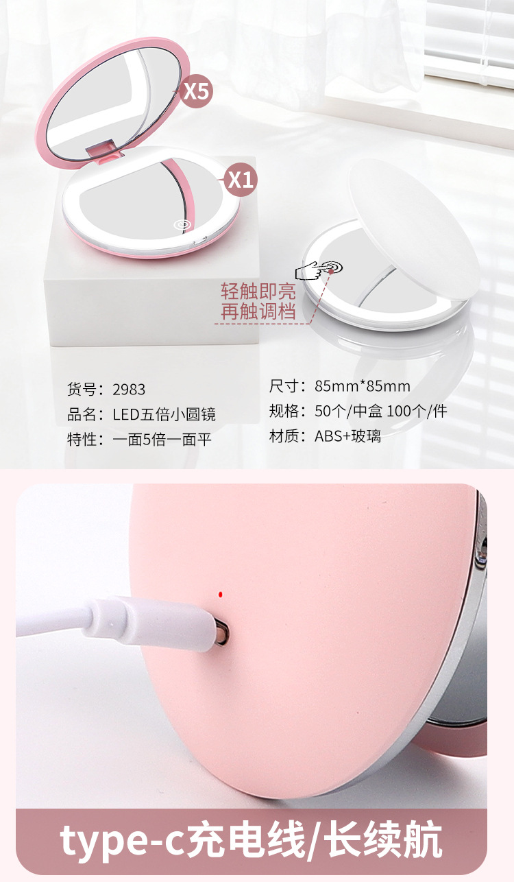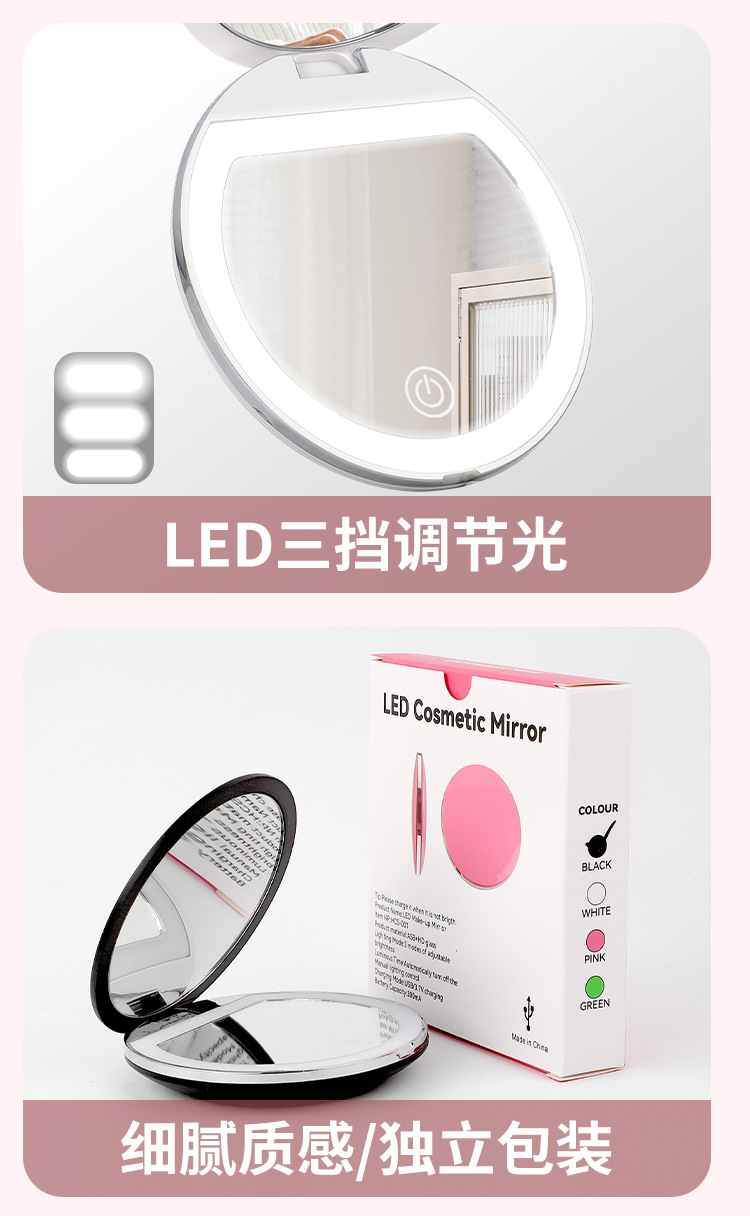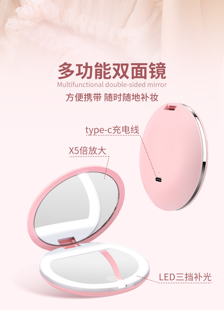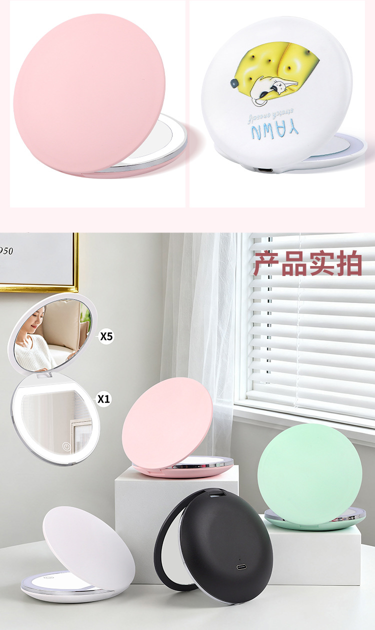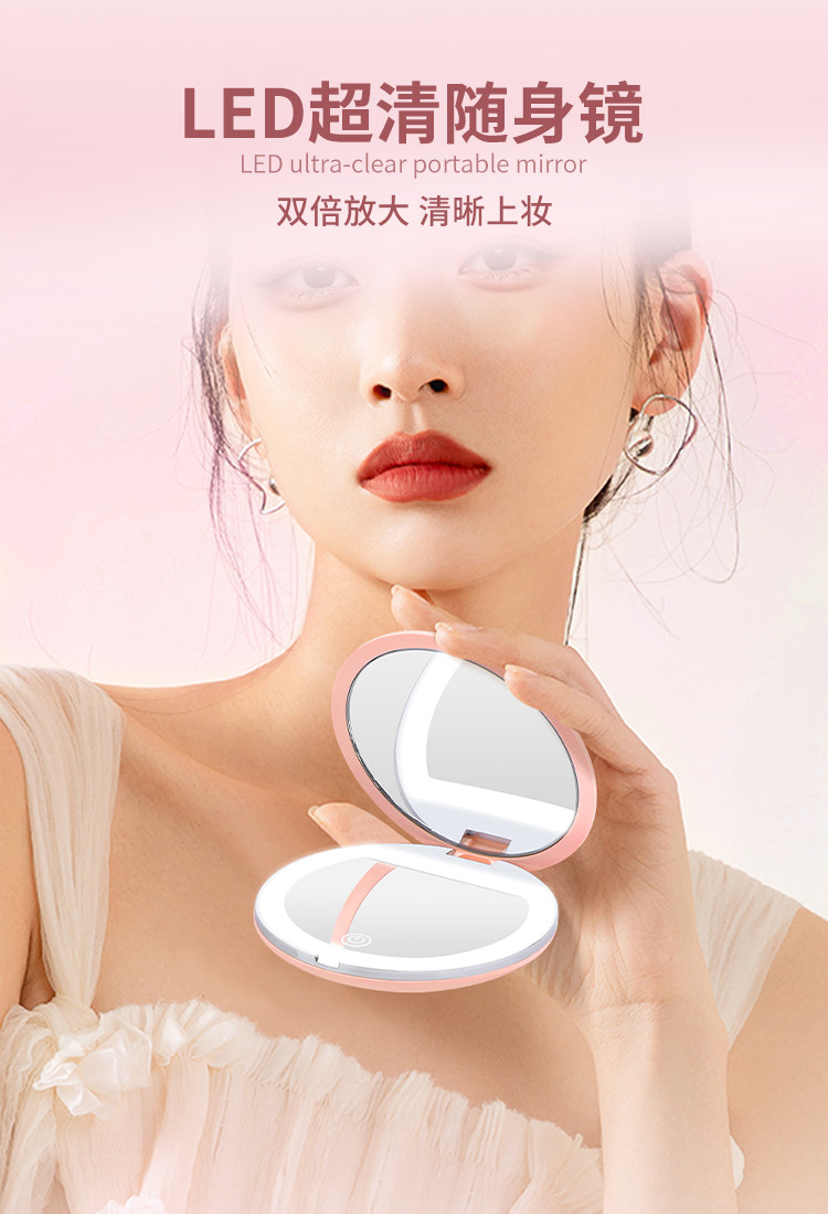 Espejo de maquillaje plegable LED de alta definición de mano ajustable brillo espejo de maquillaje con lámpara 5x ampliación espejo de lámpara portátil