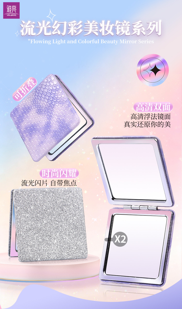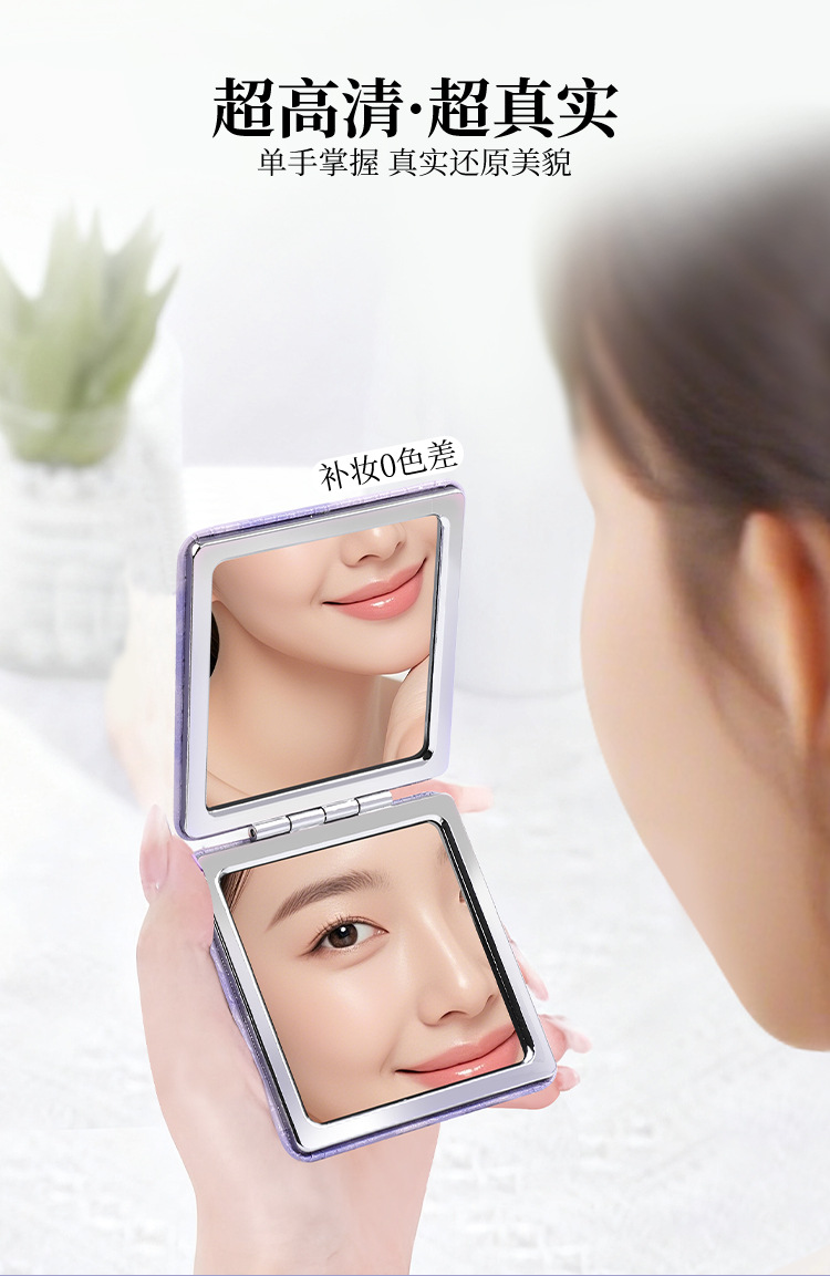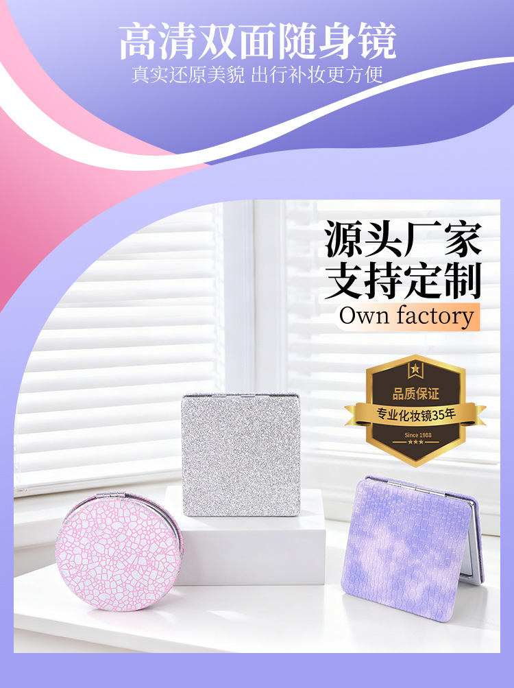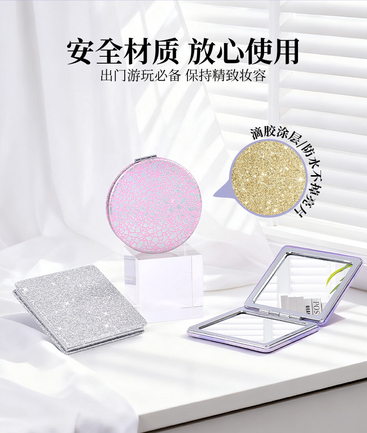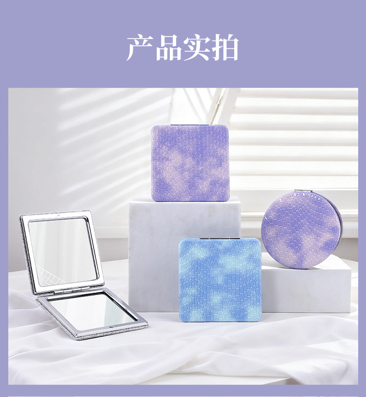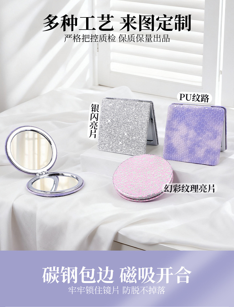 Espejo PU personalizado logotipo personalizado dormitorio de estudiantes portátil bolsillo de niña lindo portátil espejo de maquillaje plegable