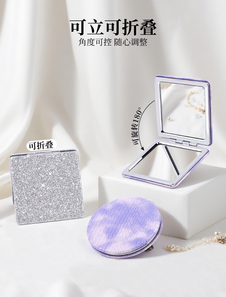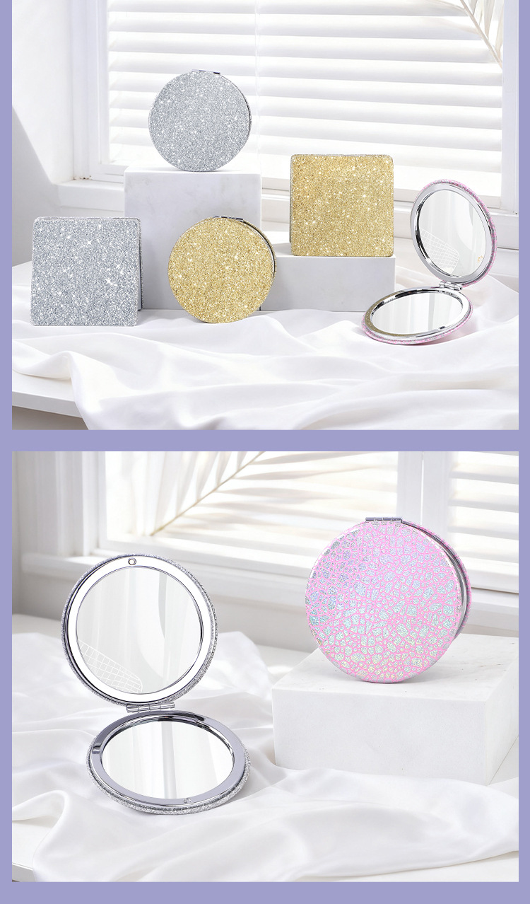 Polvo brillante de maquillaje de alta calidad cobra portátil bolsas espejo de maquillaje espejo al por mayor pequeño regalo mini espejo