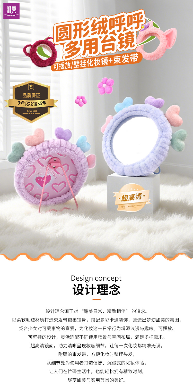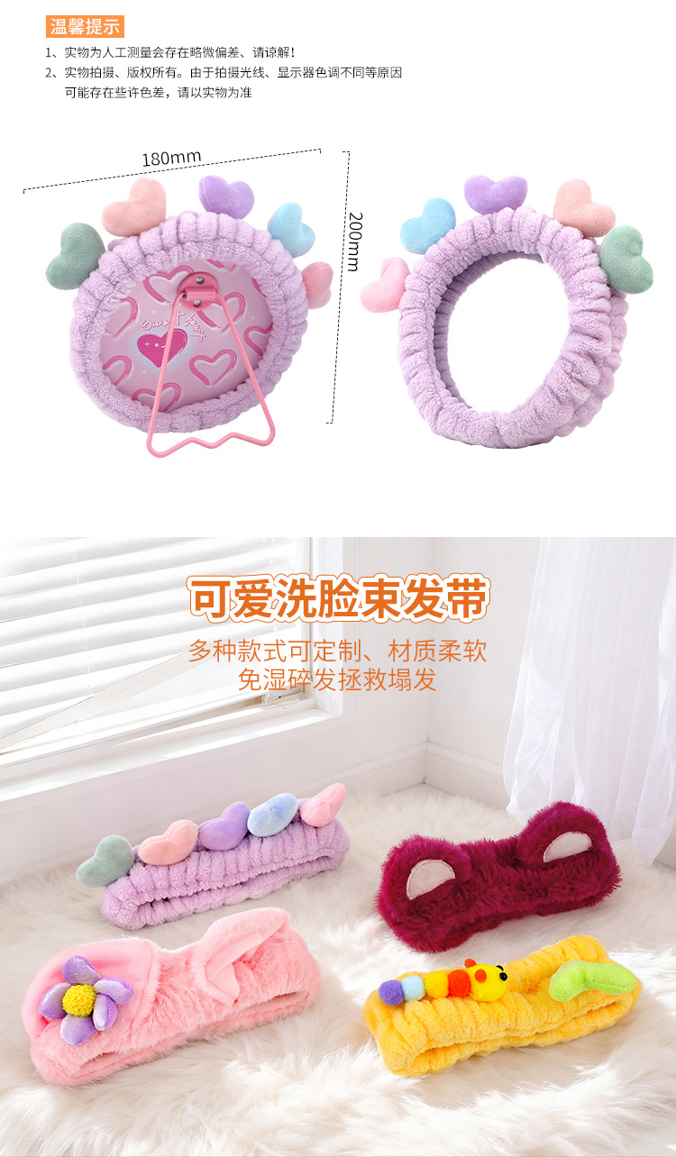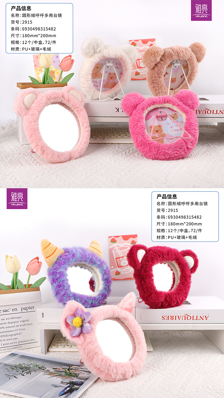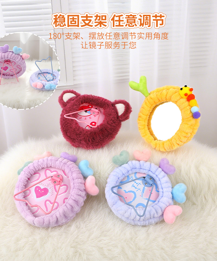 Espejo de mesa de soporte de cuero impreso redondo y correa de pelo de lavado de cara para mujeres coreanas lindas en línea amor bandana de cabeza de baño colgando espejo