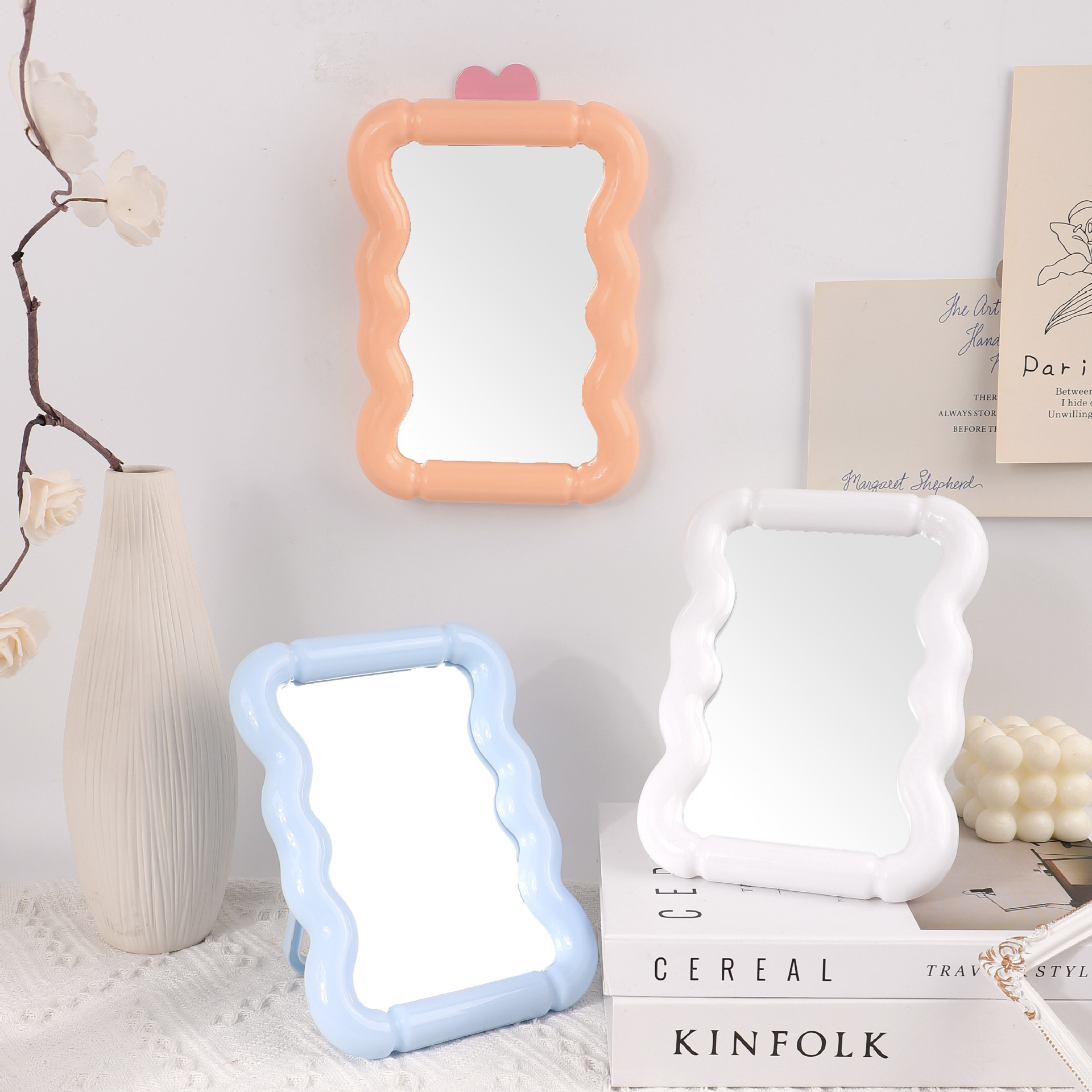 | Color | Espejo de mesa de plástico de onda rectangular, espejo de mesa de plástico de galletas, espejo de mesa de plástico de arco de viento INS, espejo de mesa de plástico de nubes, espejo de mesa cuadrado INS 2 en 1 |