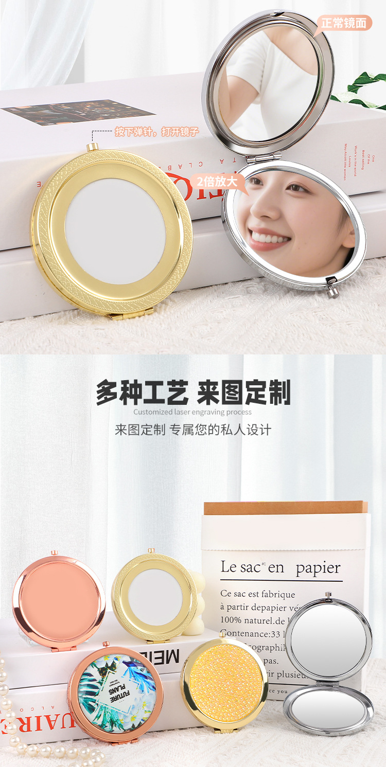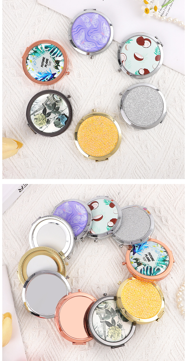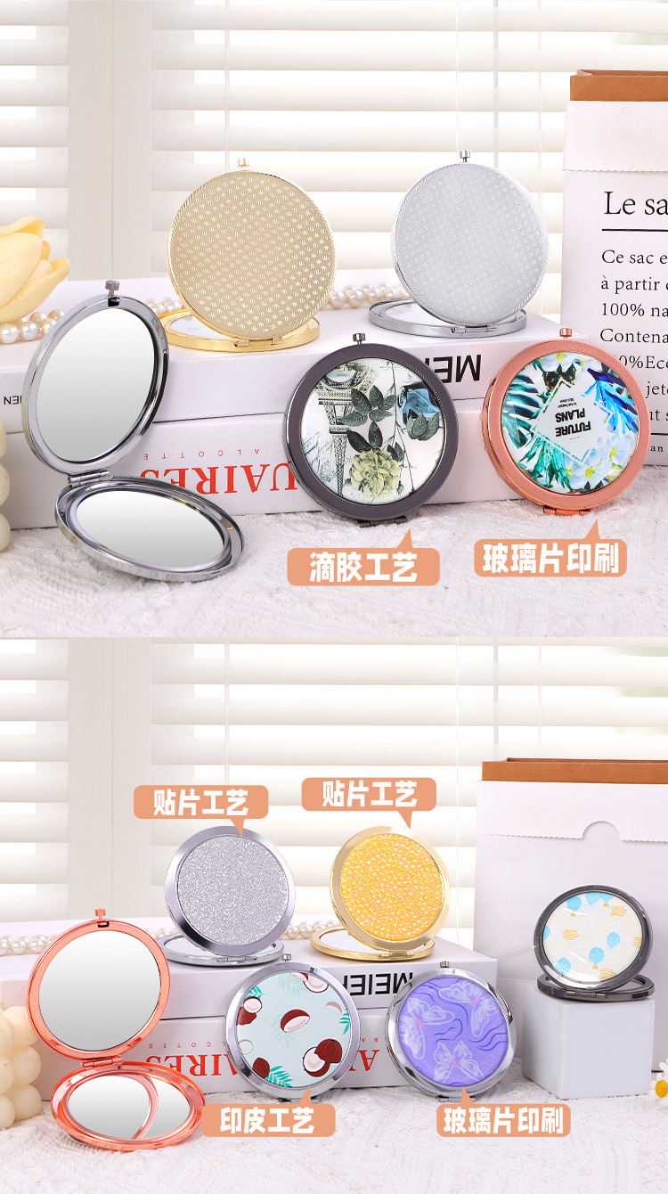 Moda creativa espejo de metal redondo espejo de bala espejo plegable de doble cara parche diamante flash comercio exterior personalizado espejo de maquillaje prepucio