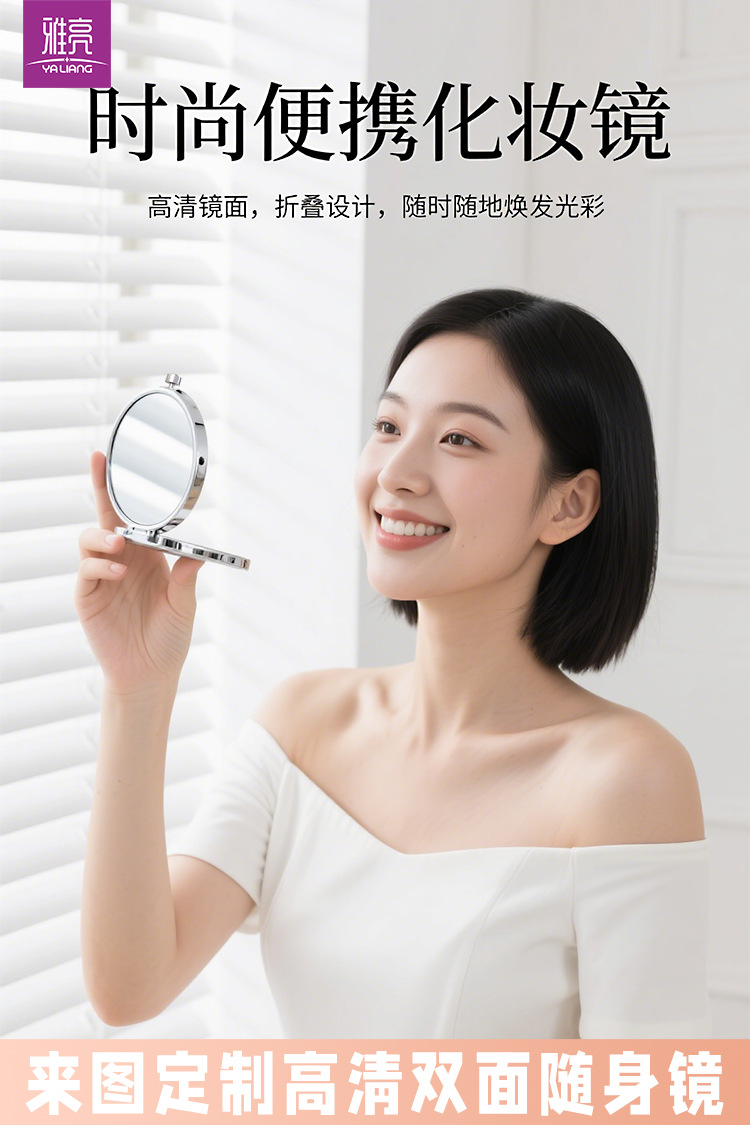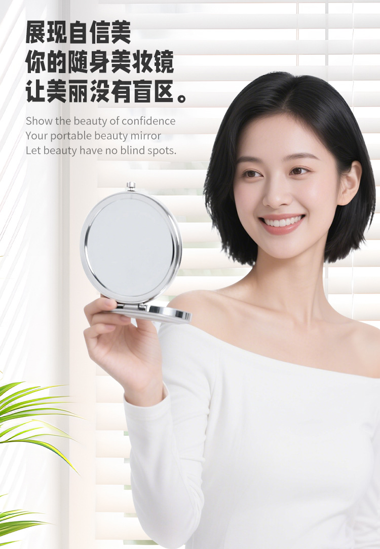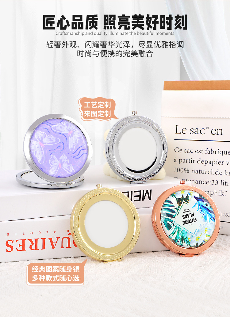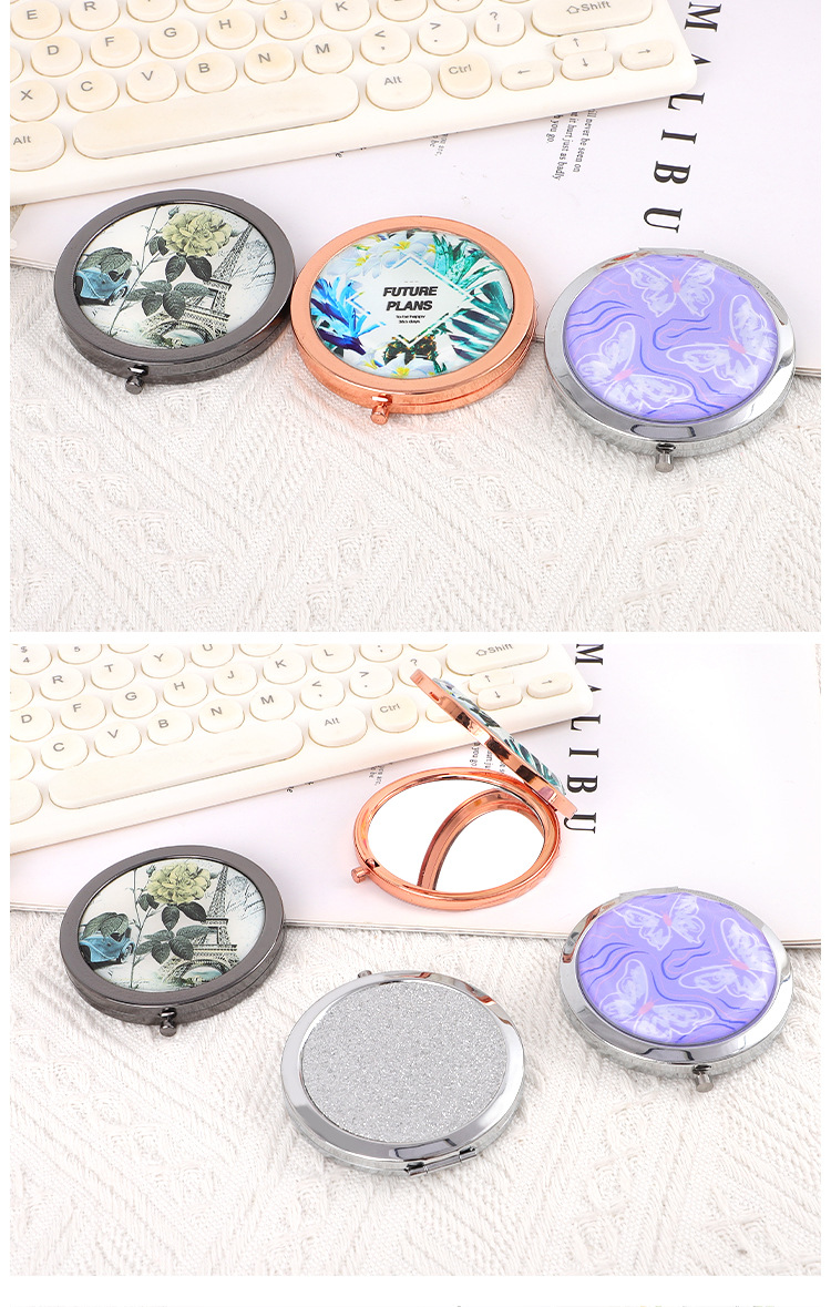 Moda creativa espejo de metal redondo espejo de bala espejo plegable de doble cara parche diamante flash comercio exterior personalizado espejo de maquillaje prepucio