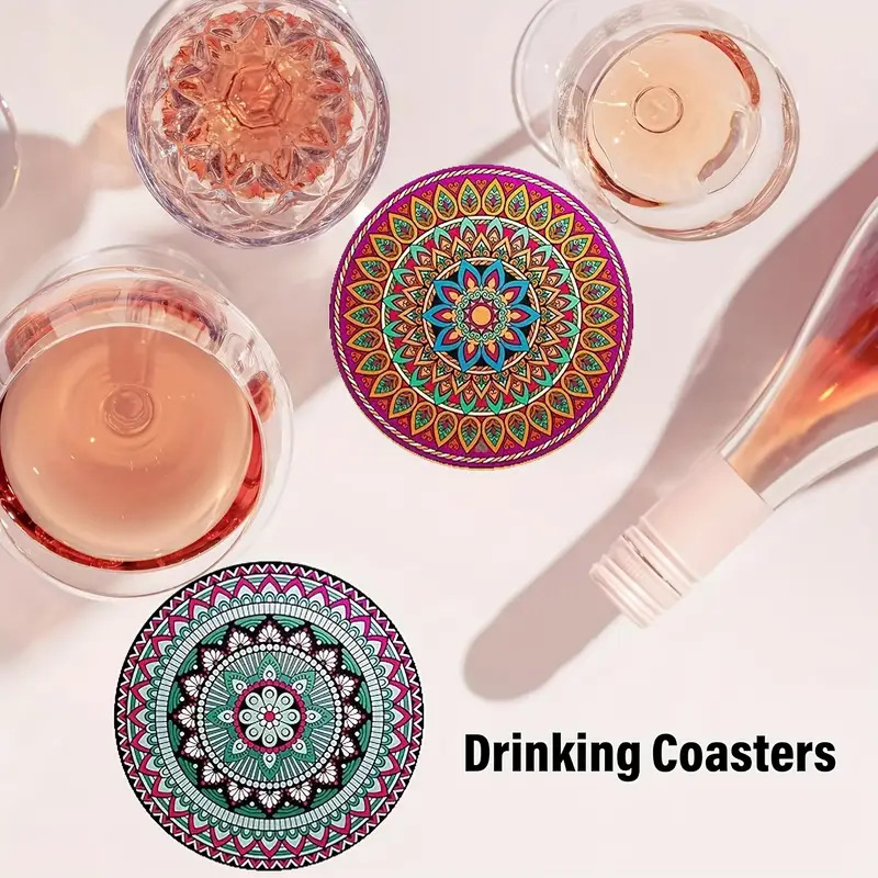 8 piezas de madera de moda fan de estilo nacional de tazas de arte resistente al calor para bebidas antideslizantes adecuadas para almohadillas de tazas de mandala