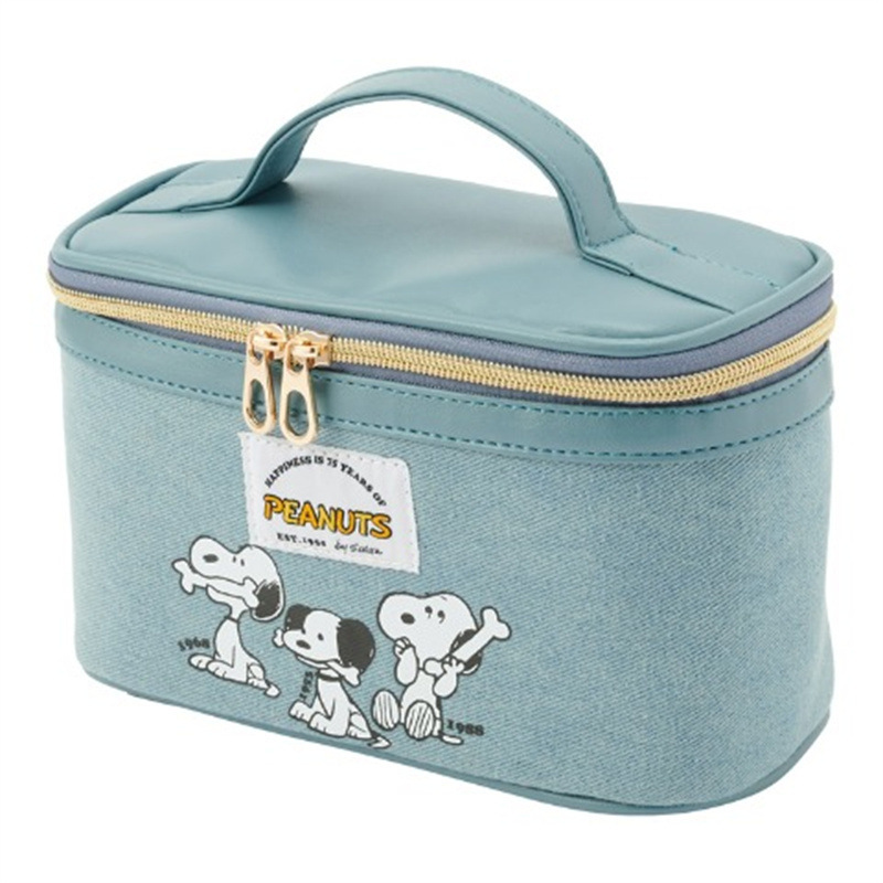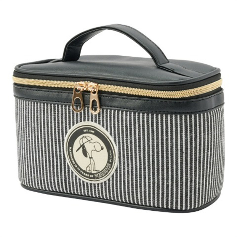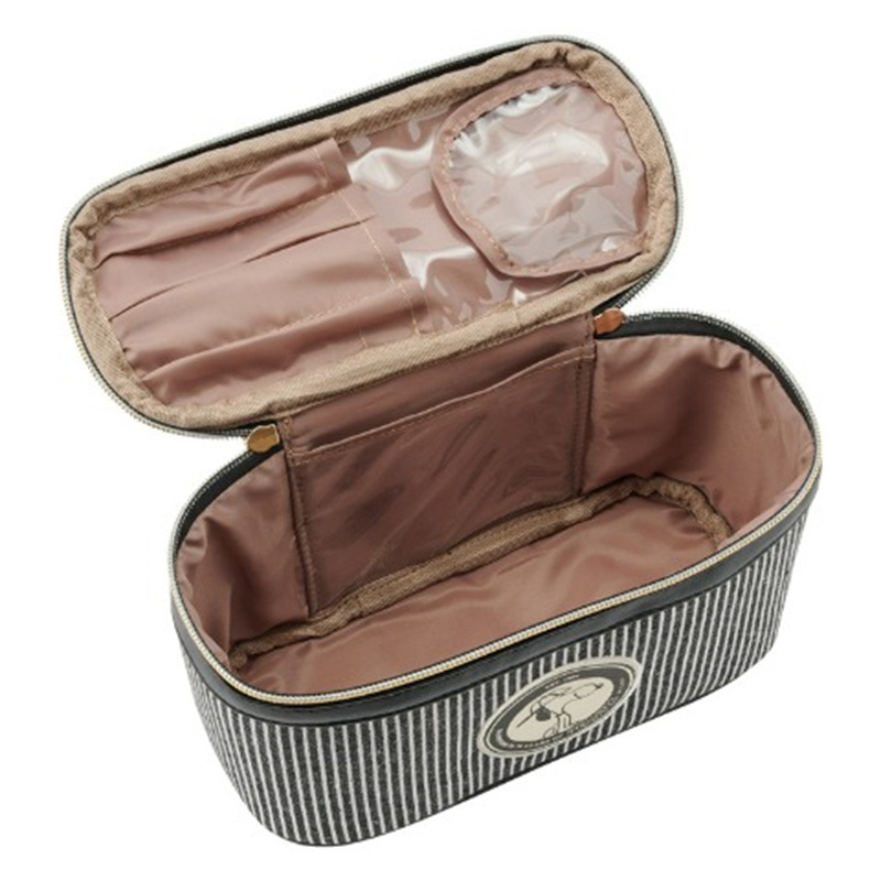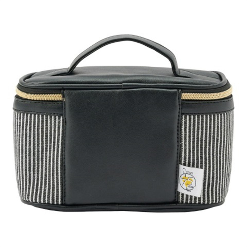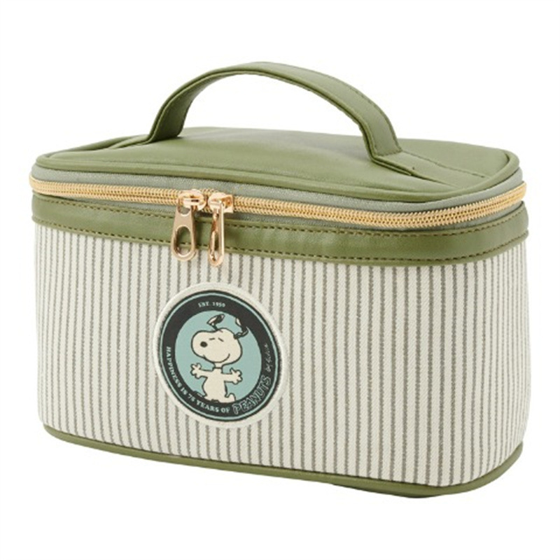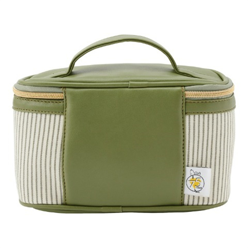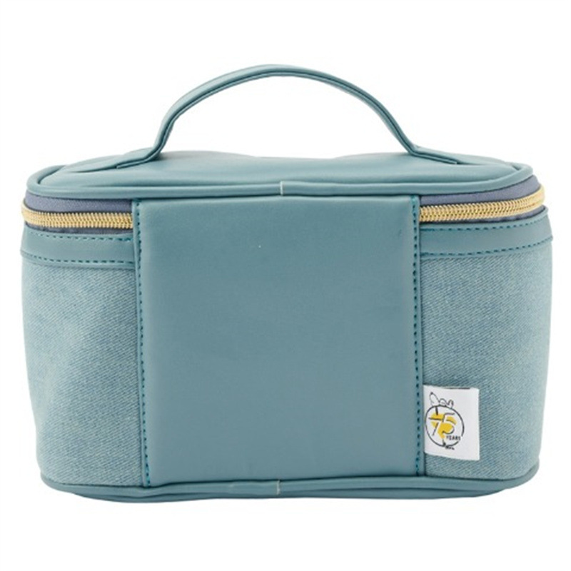 Bolso de maquillaje vaquero con caja azul, bolso de maquillaje con rayas negras, bolso de maquillaje con rayas verdes militares