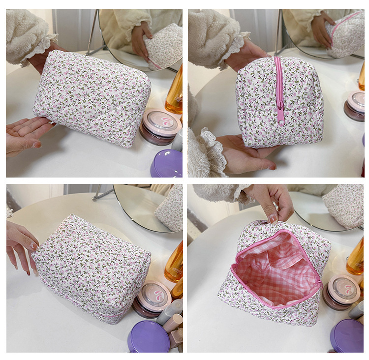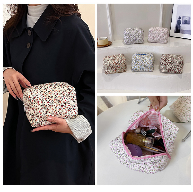 2024 nueva bolsa de maquillaje algodón flor triturada bolsa de acollimento bolsa de maquillaje damas bolsa de maquillaje auriculares billetera de datos