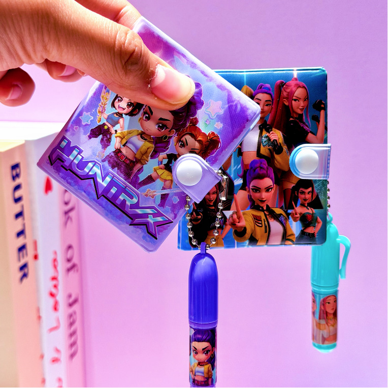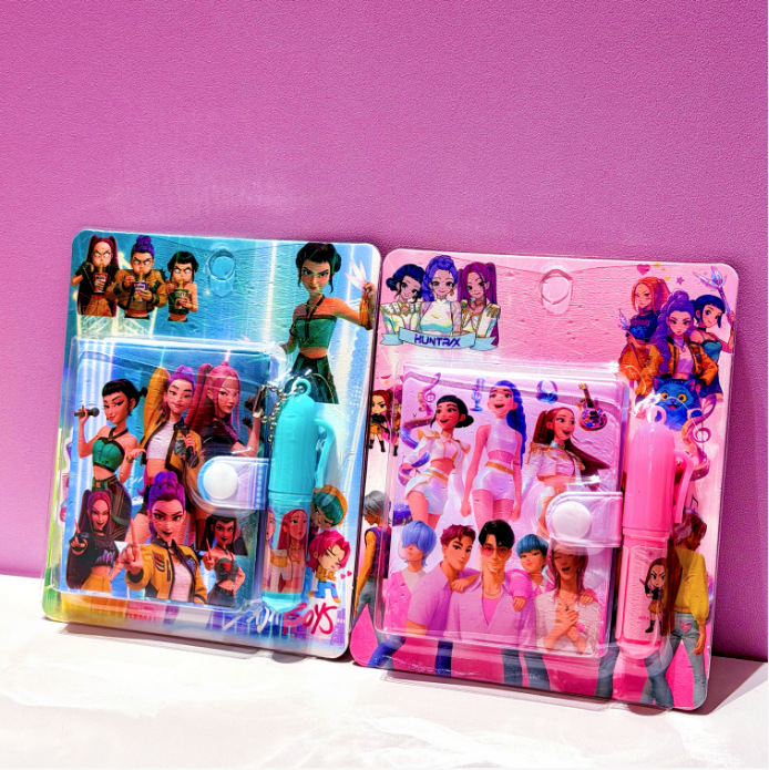 Nuevo grupo de caza de demonios cuaderno de dibujos animados escritorio conjunto de bolígrafo pequeño conjunto de regalo de papelería para estudiantes de primaria