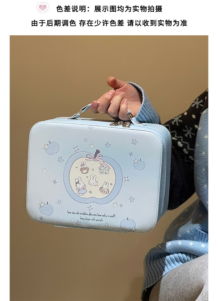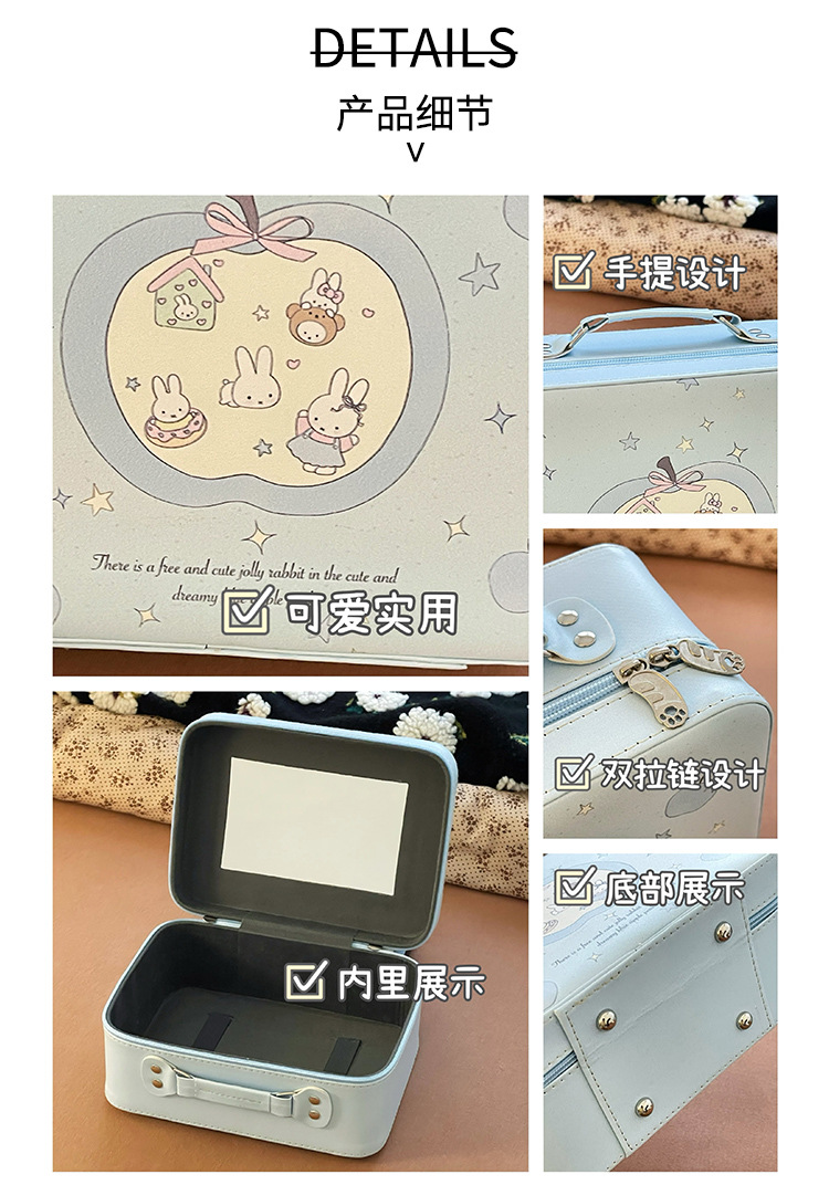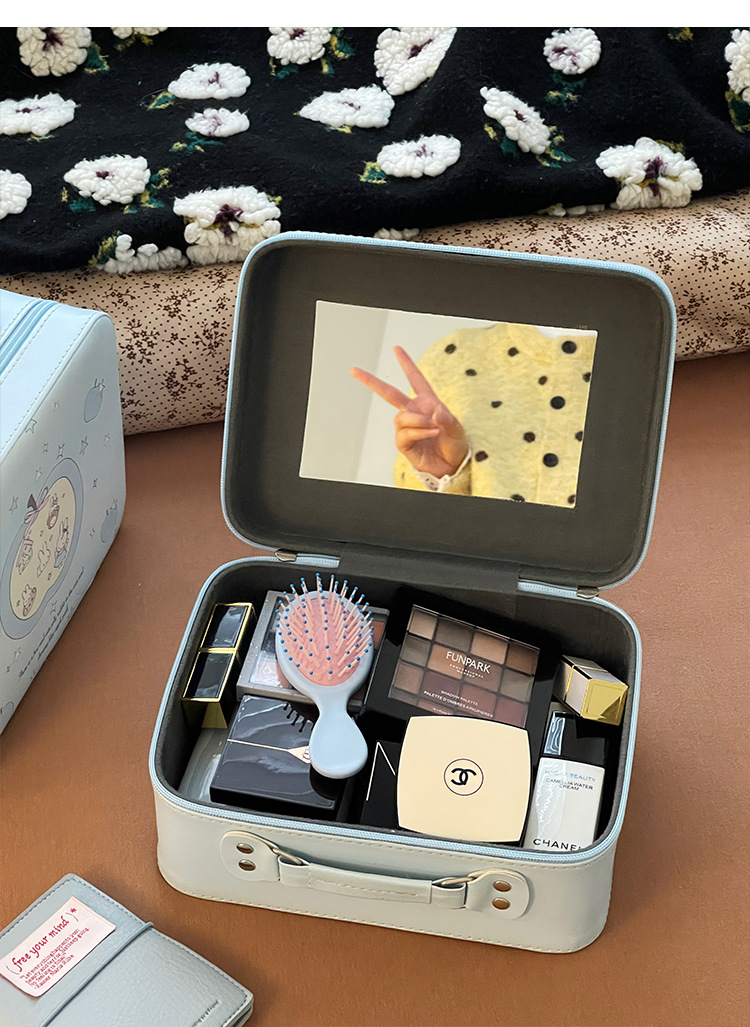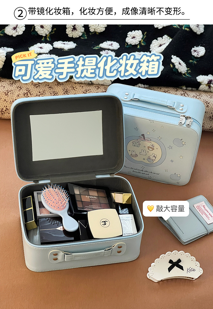 Cute bolsa de maquillaje portátil de gran capacidad caja de almacenamiento de maquillaje impermeable portátil con espejo bolsa de maquillaje