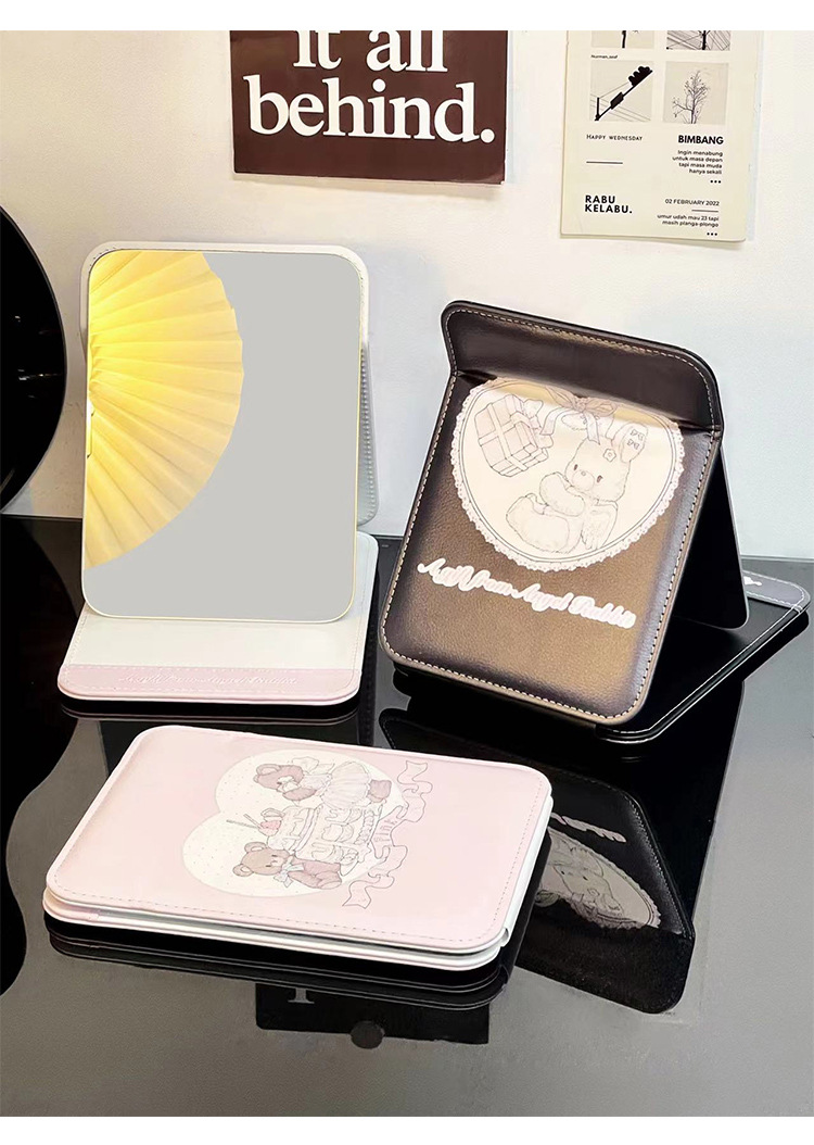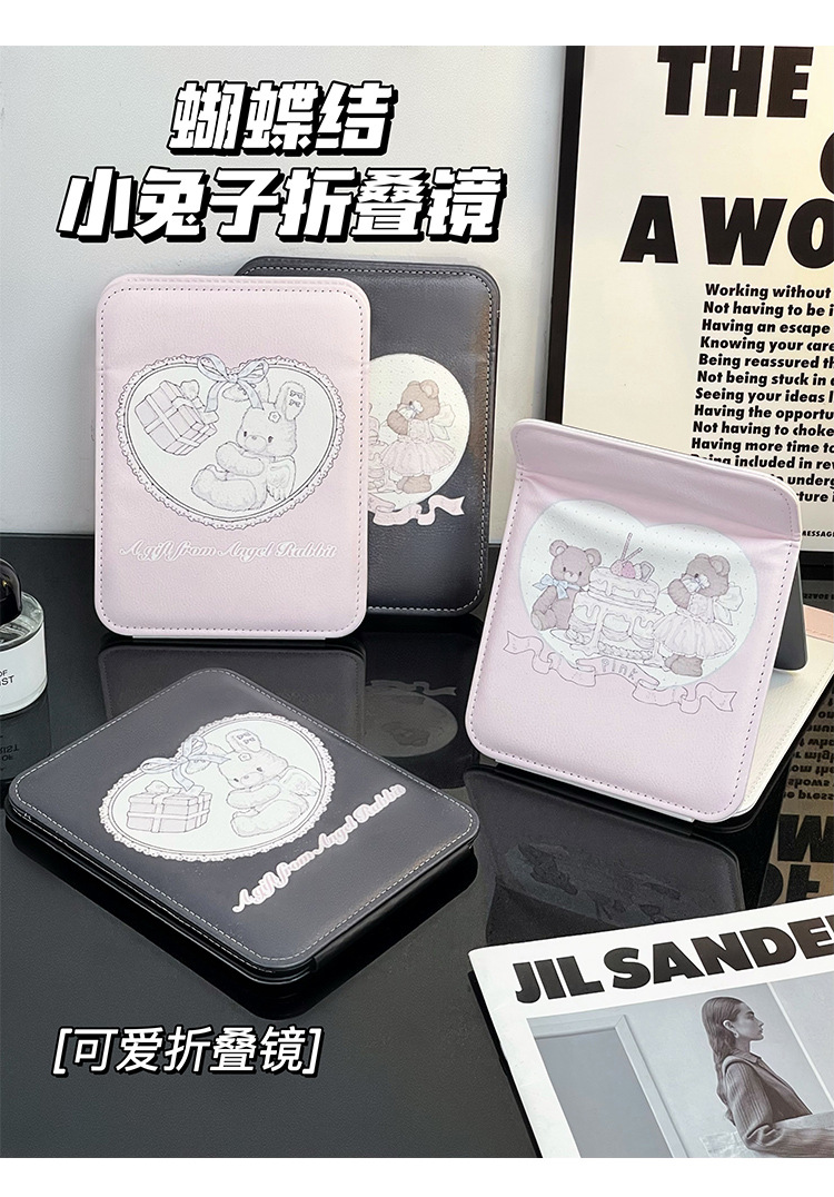 | Color | Espejo plegable conejito de regalo rosa,Pink Cake Bear espejo plegable,Espejo plegable de regalo negro conejito,Oso negro pastel espejo plegable |