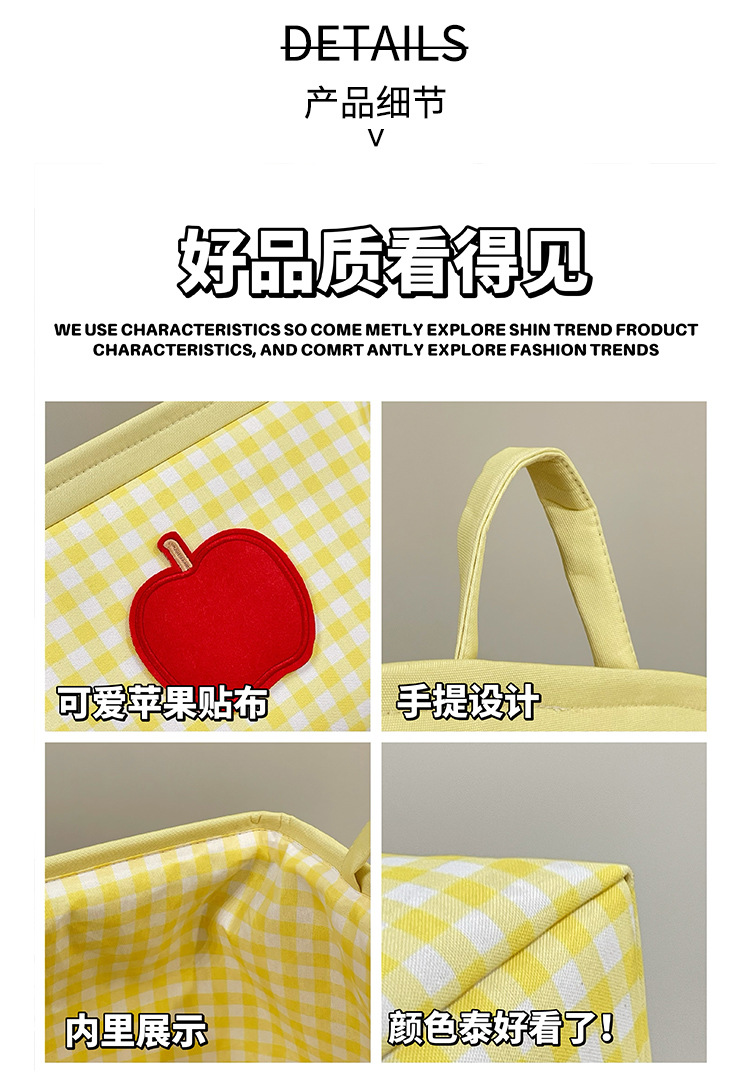 | Color | Marco de almacenamiento de manzanas a cuadros amarillos, cesta de ropa sucia de manzanas a cuadros amarillos |