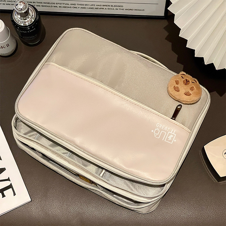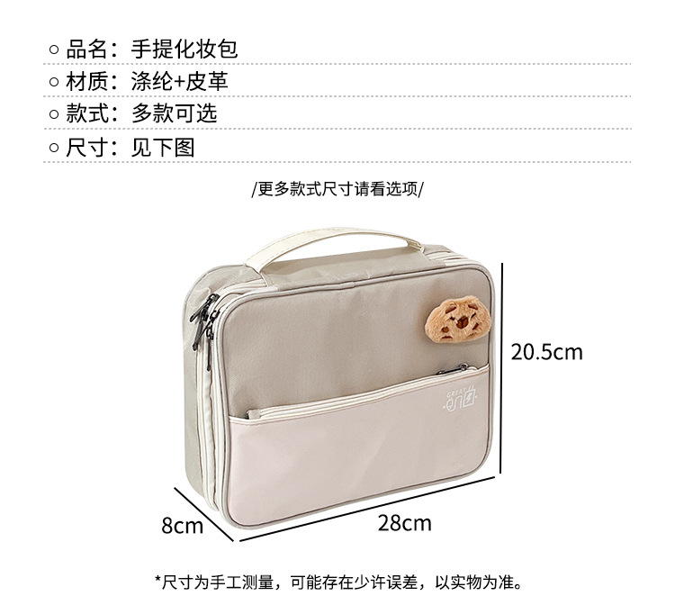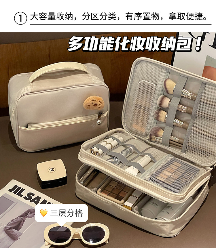 [doble capa] bolsa de maquillaje - beige, [triple capa] bolsa de maquillaje - beige, doble capa de beige de gran capacidad + broche de kapibala, tres capas de beige de gran capacidad + broche de kapibala