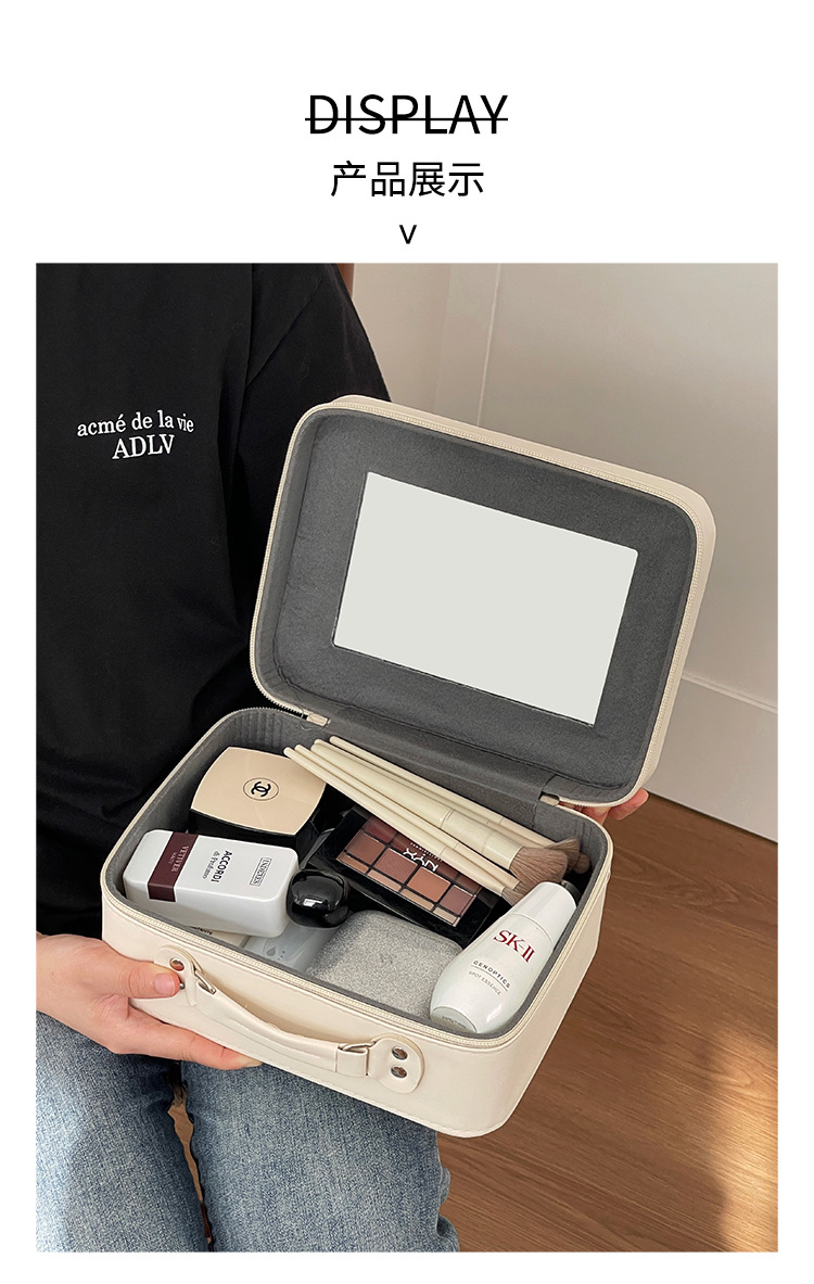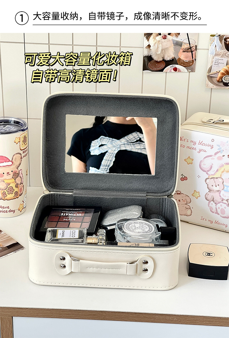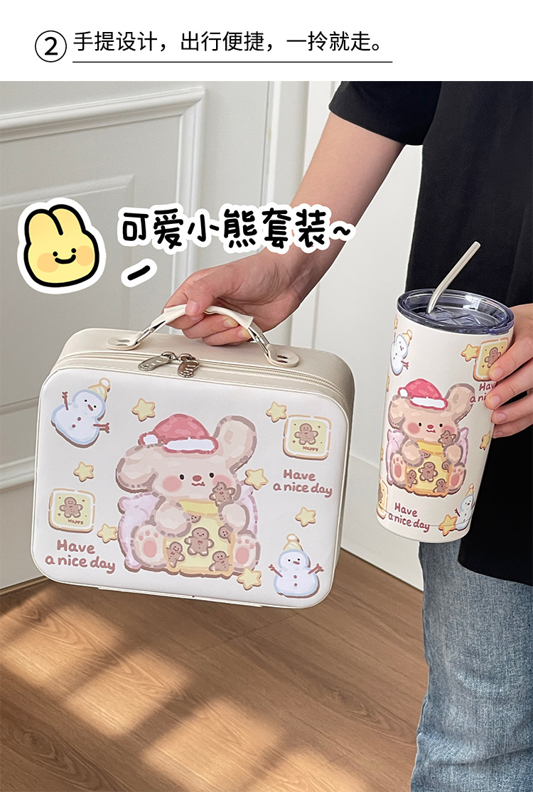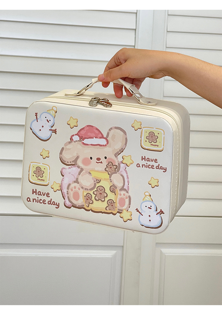 Caja de maquillaje de dibujos animados de alto valor facial portátil de gran capacidad para productos de cuidado de la piel caja de almacenamiento de acabado de cuero pu maleta de almacenamiento