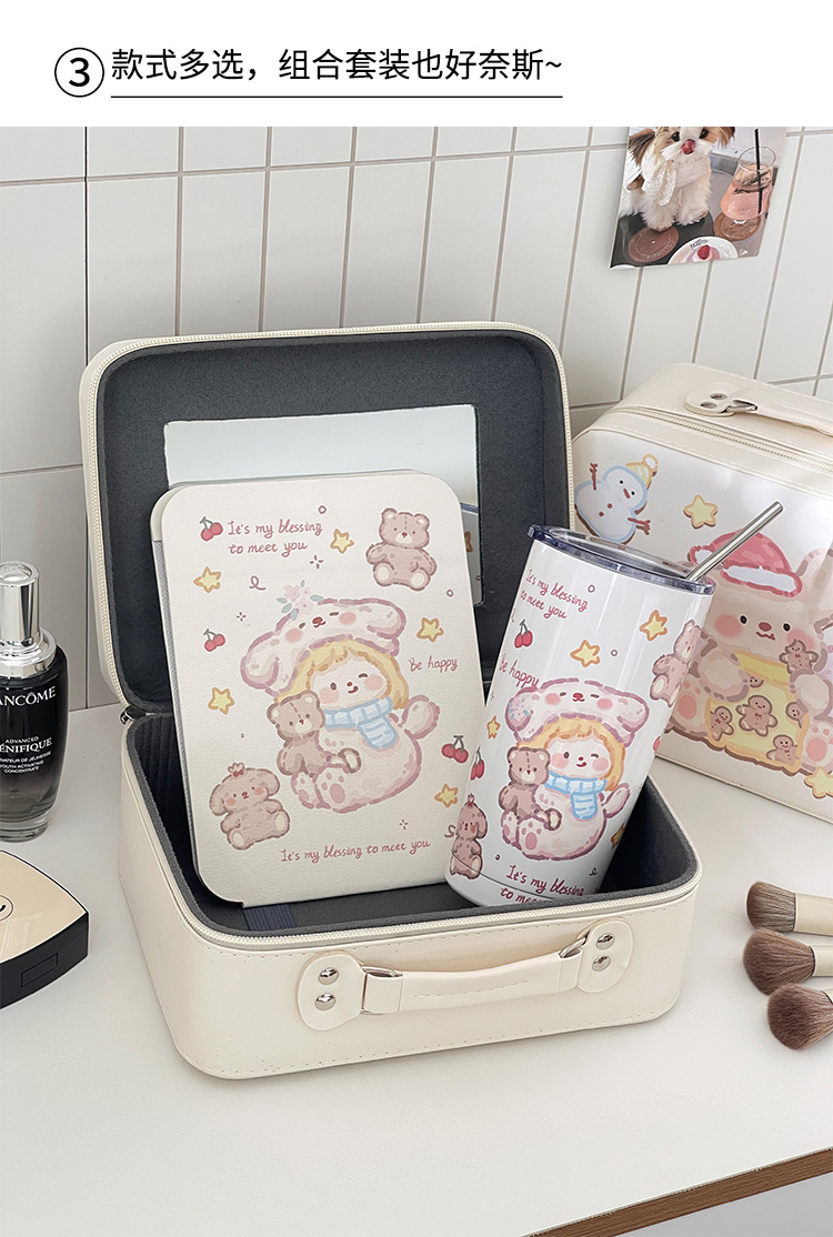 La niña oso lleva una caja de maquillaje de espejo, el cachorro de galletas lleva una caja de maquillaje de espejo