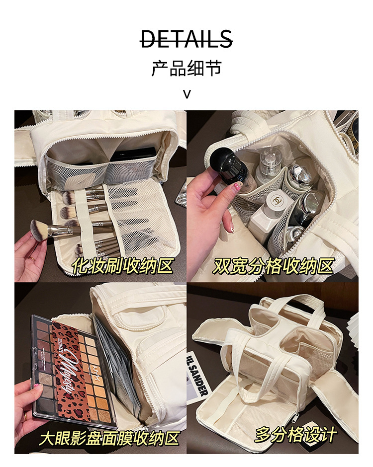| Colores | Bolsa de cosméticos de partición negra [gran capacidad],Bolsa cosmética de partición rosa [gran capacidad],Bolsa cosmética de partición beige [gran capacidad],Bolsa de cosméticos de partición azul claro [gran capacidad],Bolsa cosmética de partición rosa claro [gran capacidad] |