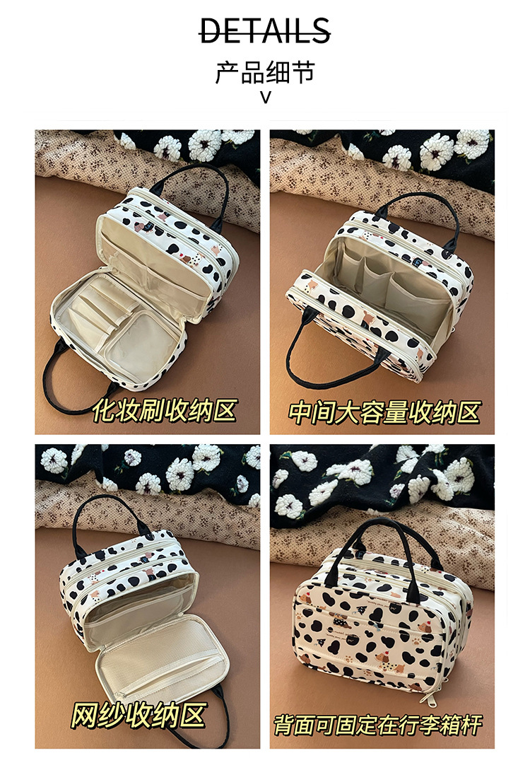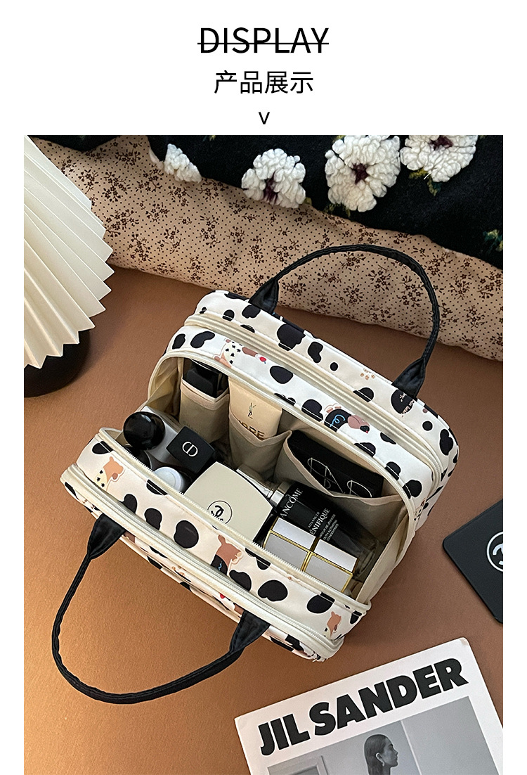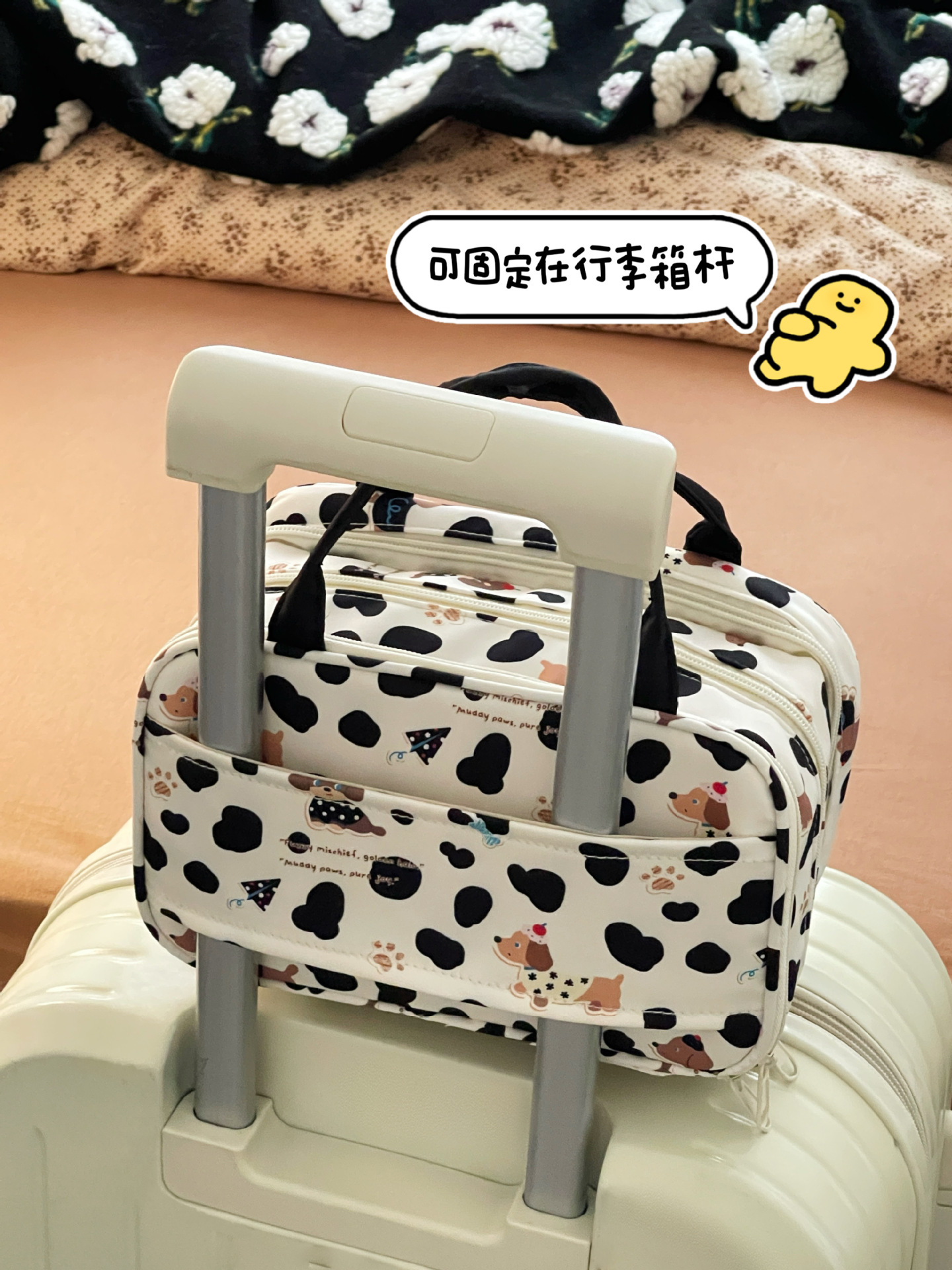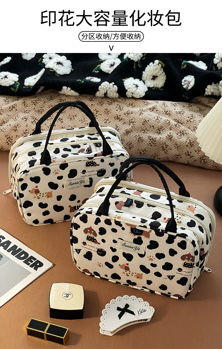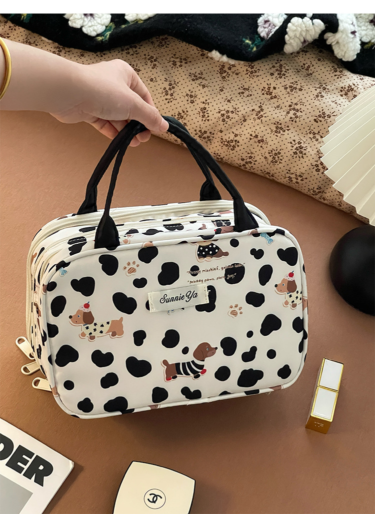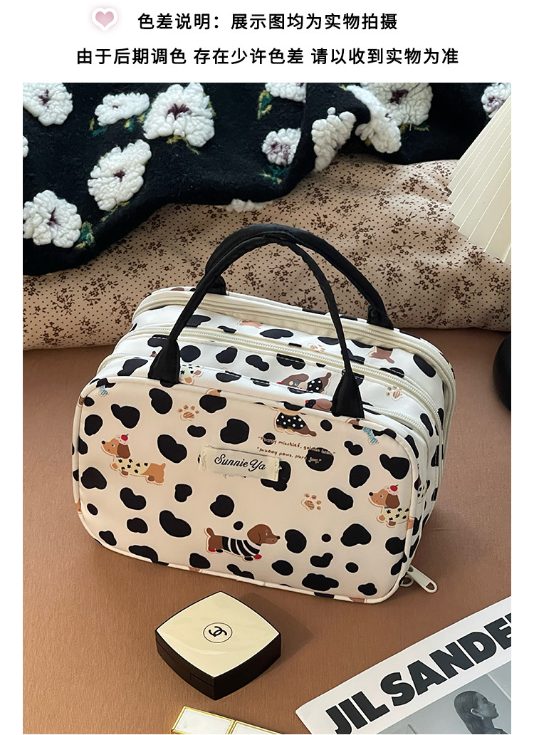 Bonita salchicha cachorro bolsa de maquillaje de gran capacidad de turismo para productos de cuidado de la piel bolsa de almacenamiento de tres capas bolsa de lavado portátil