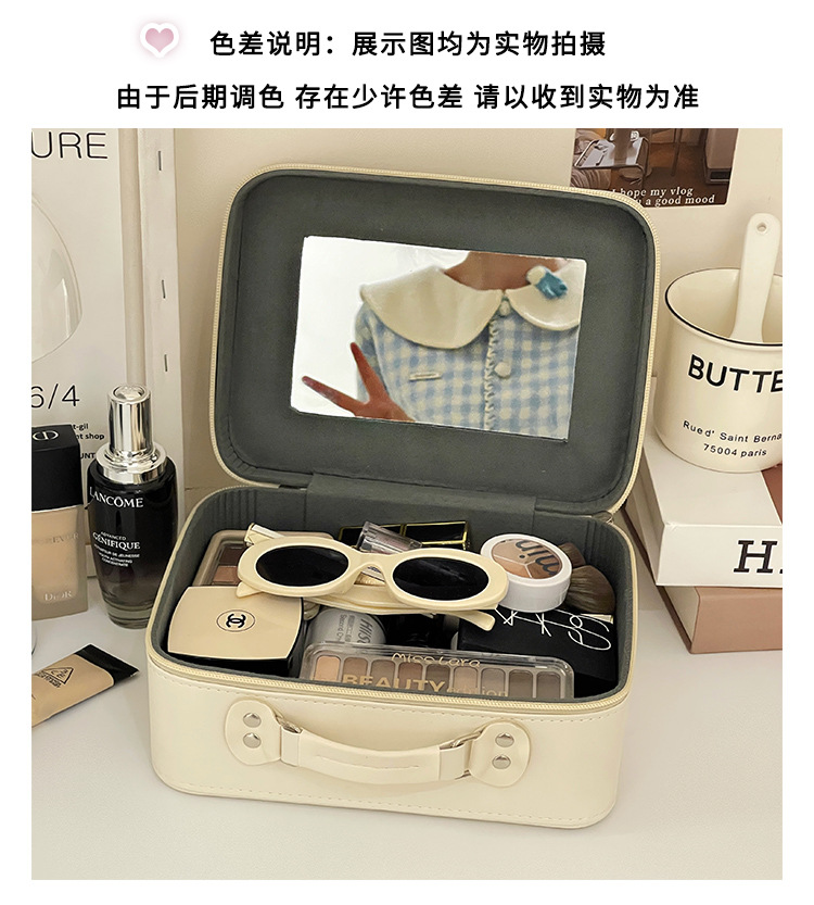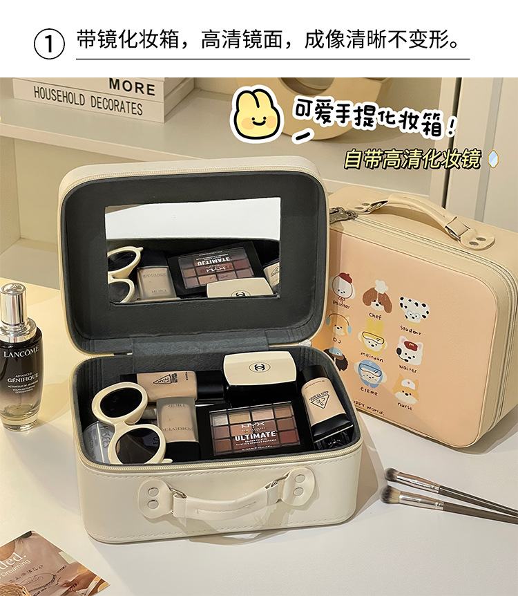 Estuche de cosméticos con espejo, linda bolsa de cosméticos portátil pequeña, bolsa de almacenamiento de viaje portátil de gran capacidad para mujer, bolsa de lavado impermeable