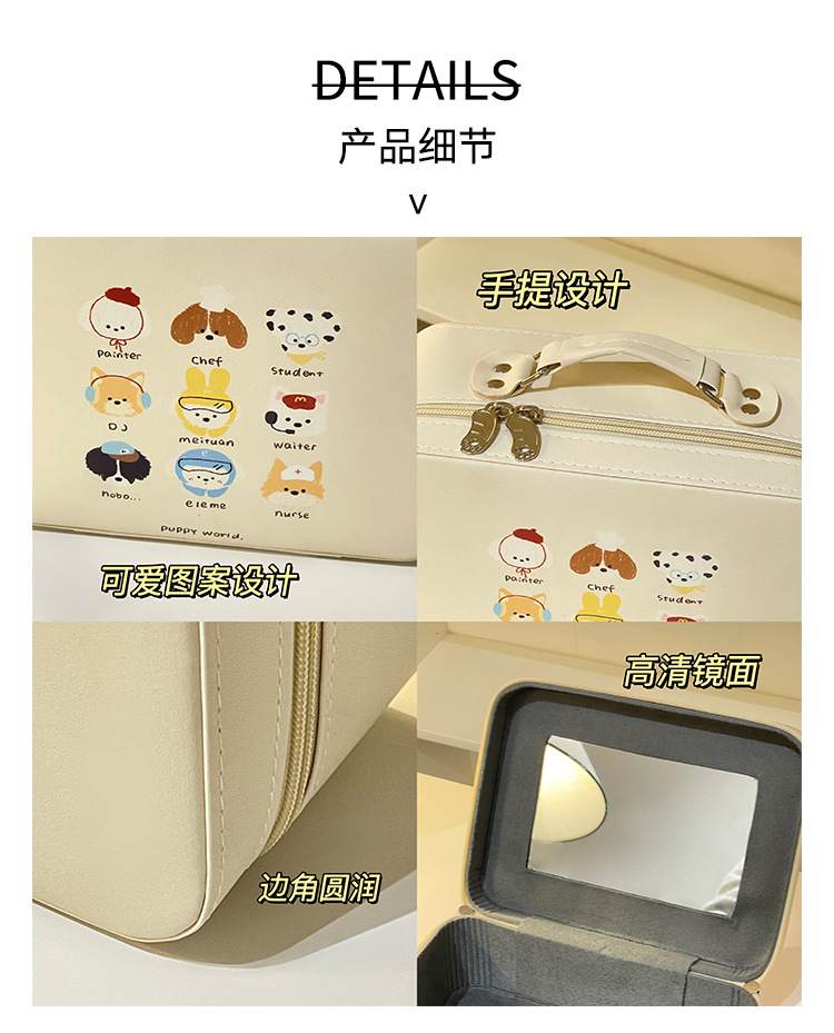 Cachorro beige con espejo estuche de maquillaje,Cachorro amarillo con espejo estuche de maquillaje