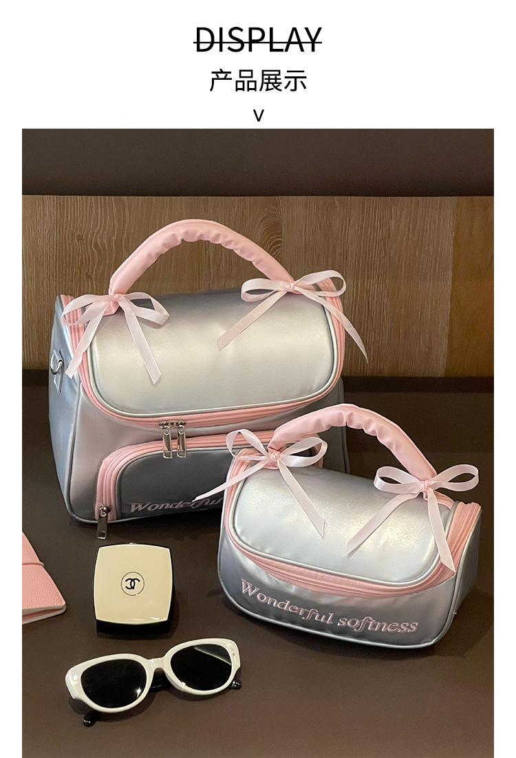 Nueva bolsa de maquillaje de arco simple portátil bolsa de almacenamiento de mano bolsa de lavado impermeable de gran capacidad