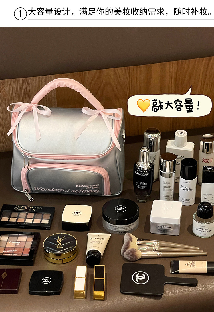Bolso de maquillaje de lazo plateado - tamaño grande, bolso de maquillaje de lazo Rosa - tamaño grande, bolso de maquillaje de lazo marrón - tamaño grande, bolso de maquillaje de lazo plateado - tamaño pequeño, bolso de maquillaje de lazo Rosa - tamaño pequeño, bolso de maquillaje de lazo marrón - tamaño pequeño