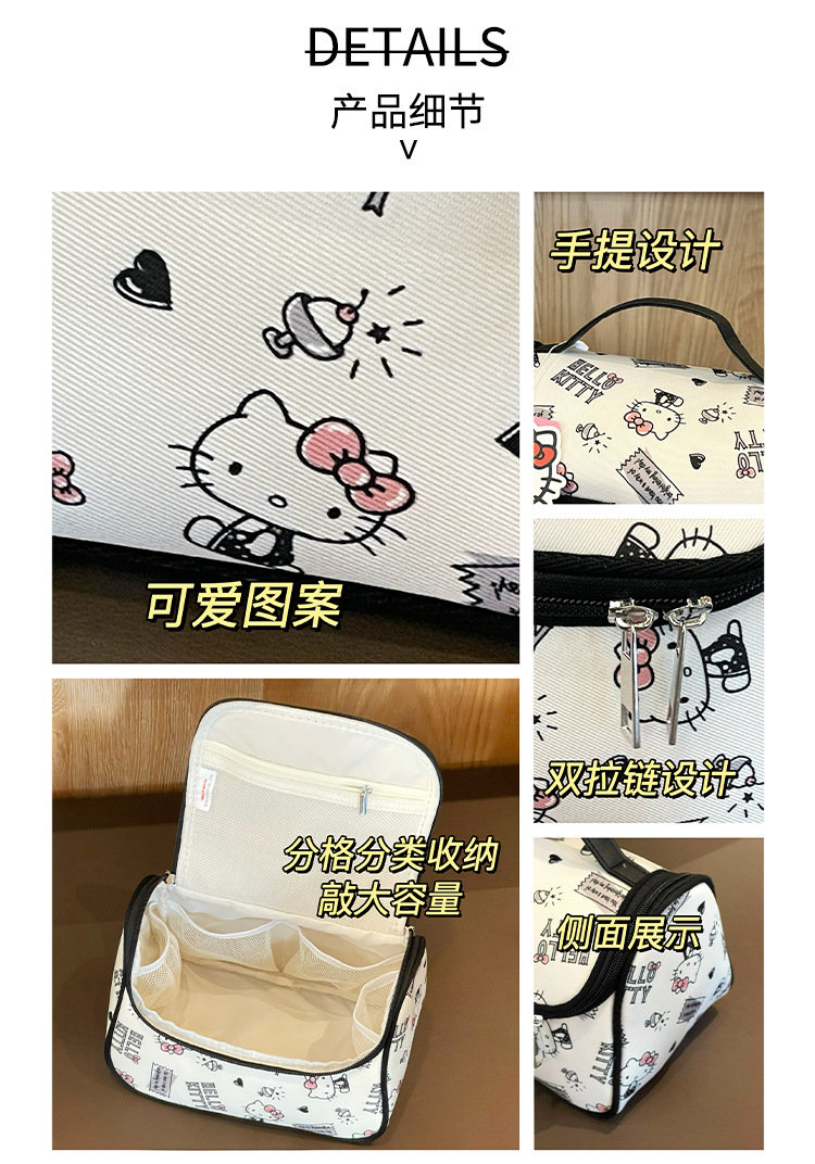 Bolsa de maquillaje de mujer gran capacidad adorable Kitty bolsa de almacenamiento bolsa de viaje portátil bolsa de lavado bolsa de almacenamiento de cosméticos