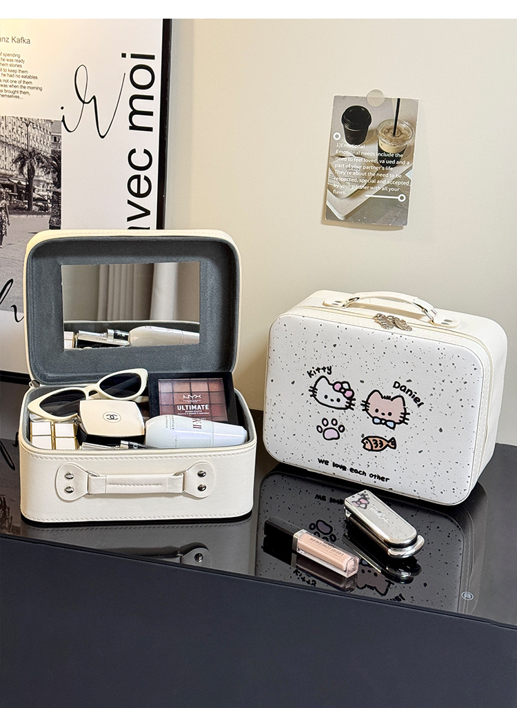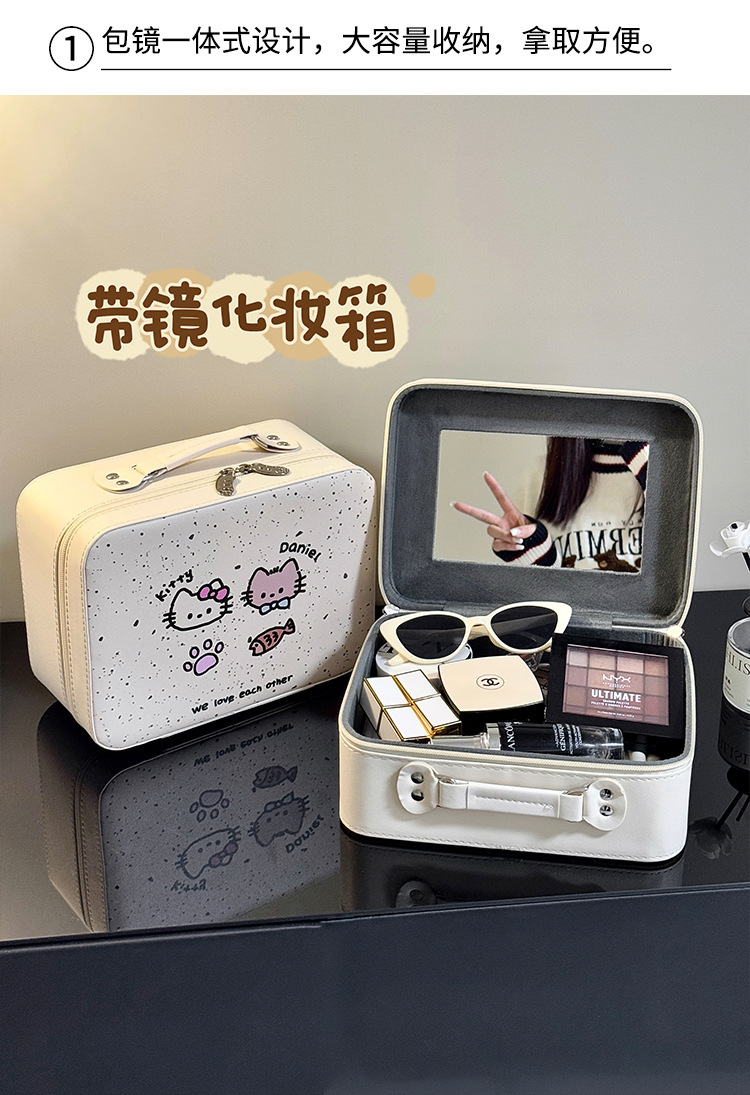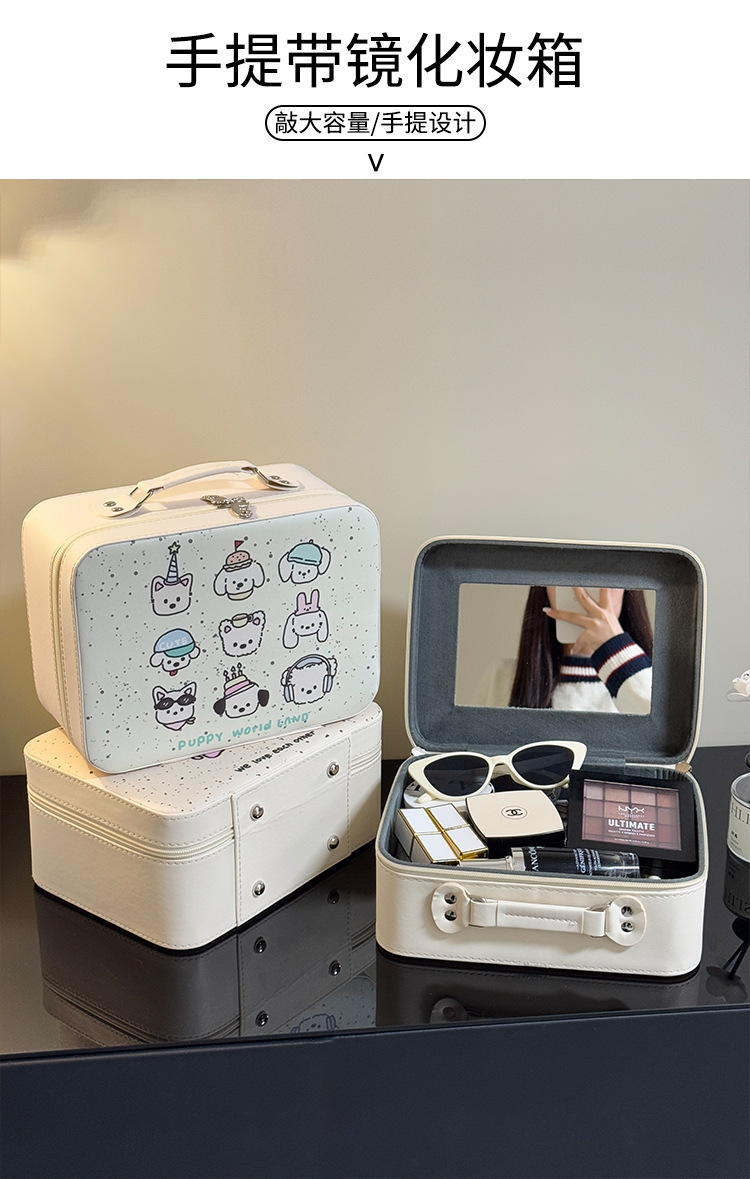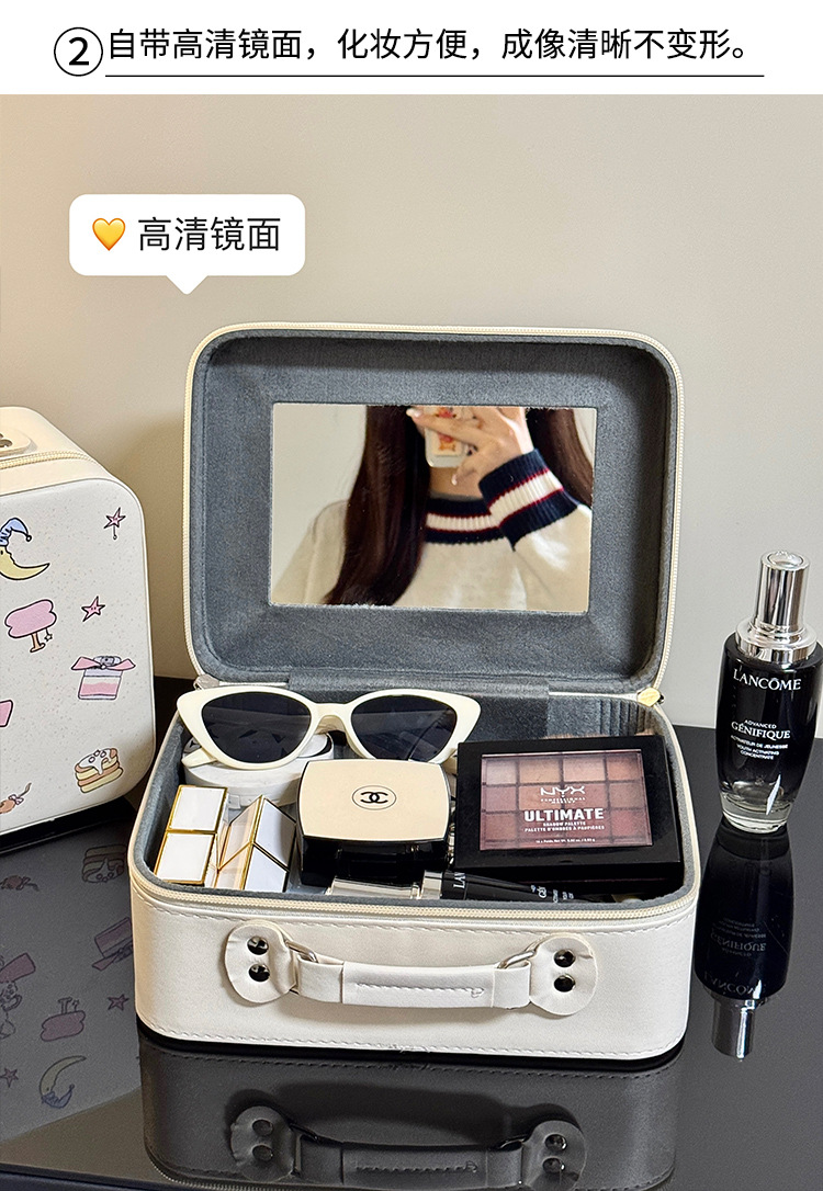 Maleta de maquillaje Pu maleta de maquillaje de gran capacidad mujer maleta de espejo portátil 2025 nueva maleta de viaje