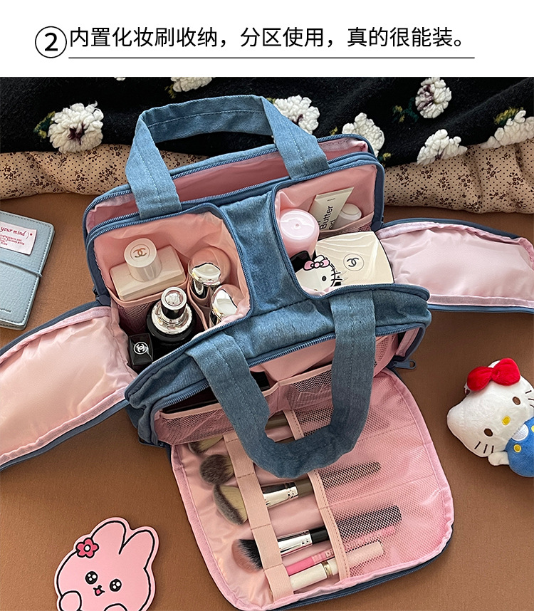 Bolsa de maquillaje de sección [capacidad gigante] bolsa de maquillaje de sección, vaquero [capacidad gigante] bolsa de maquillaje de sección, bolsa de maquillaje de Sección de celosía amarilla [capacidad gigante], bolsa de maquillaje de rima de Sección Azul (se puede fijar la maleta), bolsa de maquillaje de corazón rosa (se puede fijar la maleta)
