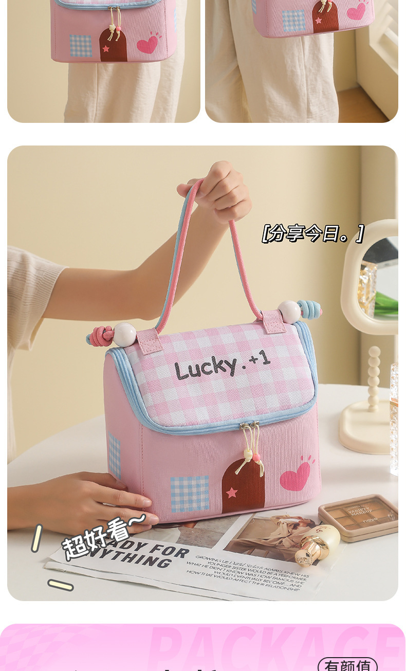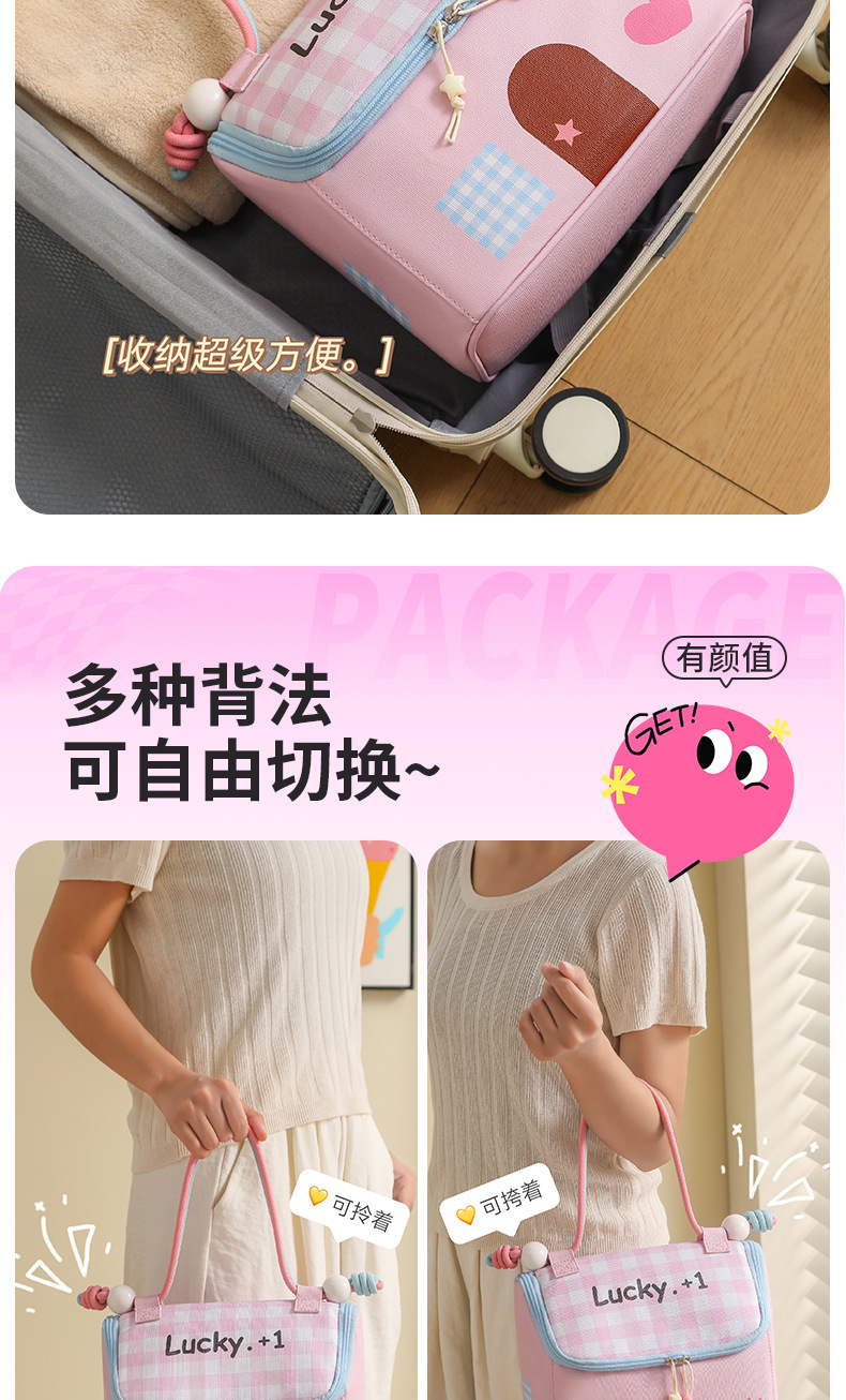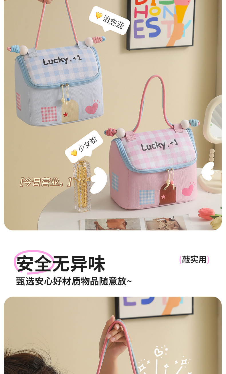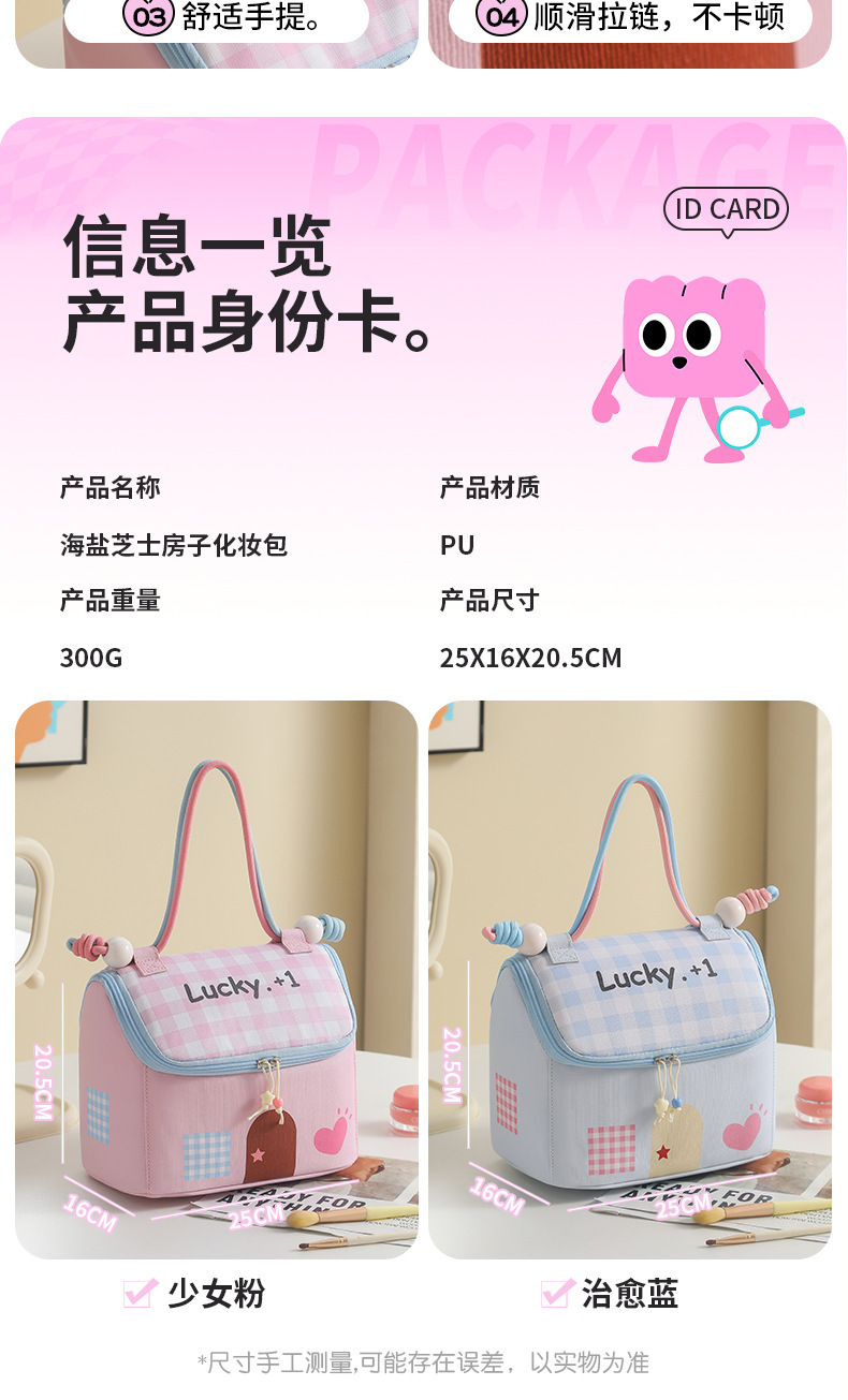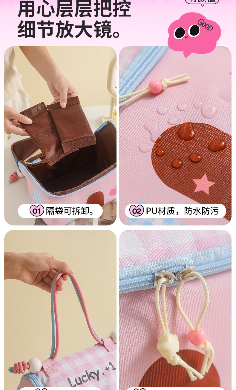 Casa pequeña encantadora bolsa de maquillaje de dopamina color de gran capacidad de partición de almacenamiento de viaje bolsa de almacenamiento portátil bolsa de mano