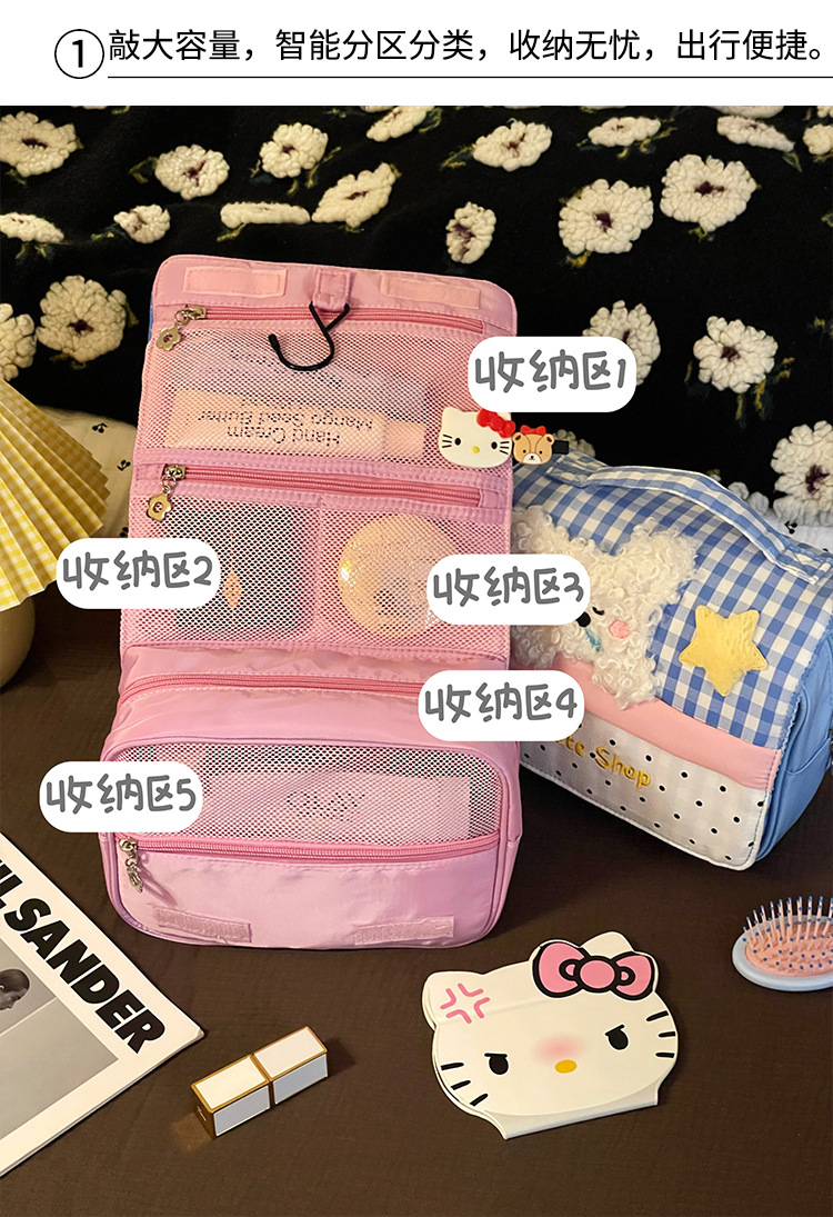 Nuevo lindo bolso de maquillaje portátil de gran capacidad bolsa de almacenamiento de clasificación de viaje de chicas bolsa de cosméticos