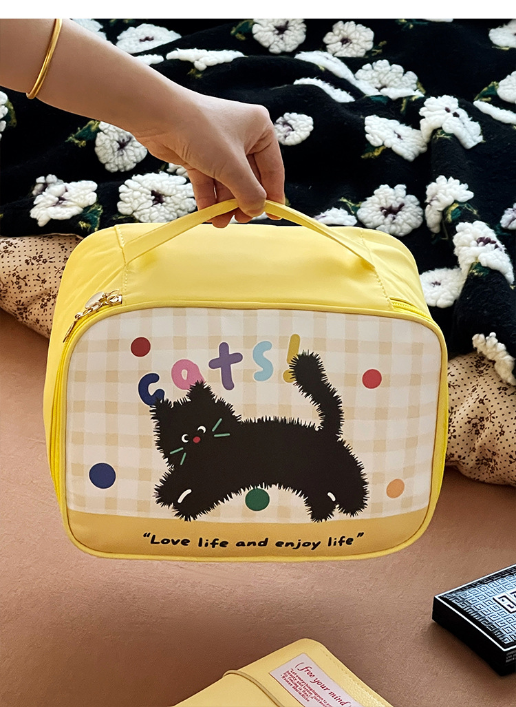 Gatos amarillos - bolsas de maquillaje, manzanas amarillas - bolsas de maquillaje, osos amarillos - bolsas de maquillaje, perros en polvo - bolsas de maquillaje