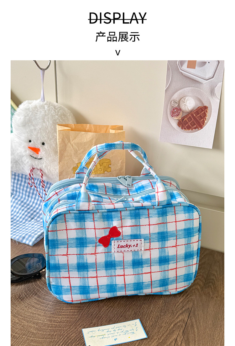 Bolso de maquillaje para cachorros Blue GRID (puede sujetar la maleta), bolso de maquillaje para cachorros Blue GRID (puede sujetar la maleta), bolso de maquillaje para novios rosas (puede sujetar la maleta), bolso de maquillaje para cachorros lecheros (puede sujetar la maleta), bolso de maquillaje para gatos red White Kitty (puede sujetar la maleta)