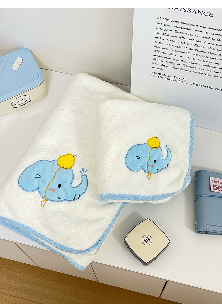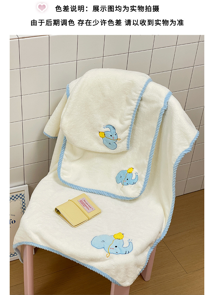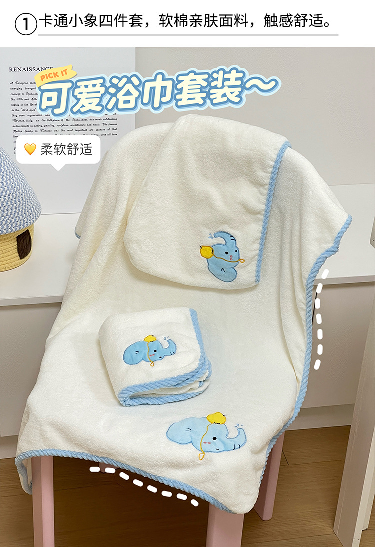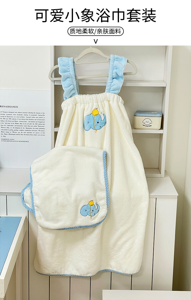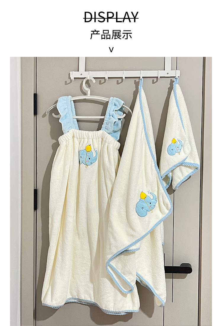 | Colores | Vestido de baño de elefante azul,Toalla de baño de elefante azul,Toalla de elefante azul,Gorro de pelo seco elefante azul |