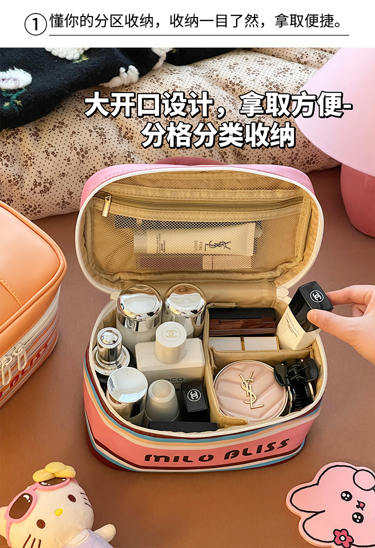 Bolso cosmético de color de contraste de dopamina bolso de viaje portátil de gran capacidad 2025 nuevo bolso de almacenamiento de partición súper caliente