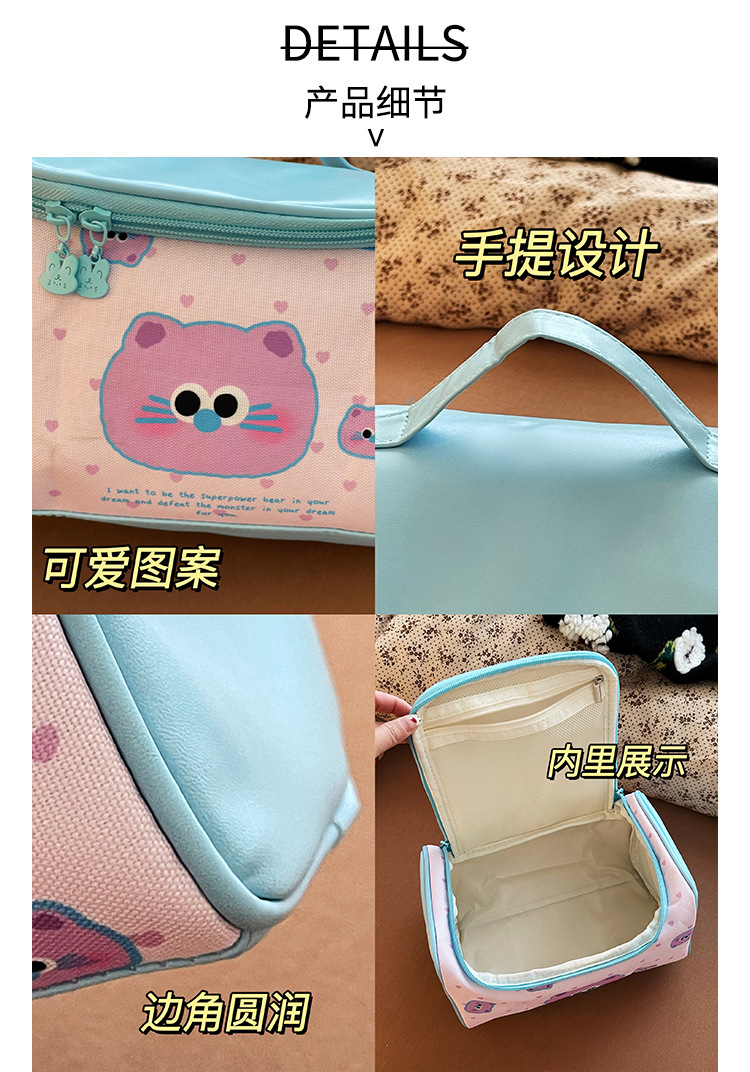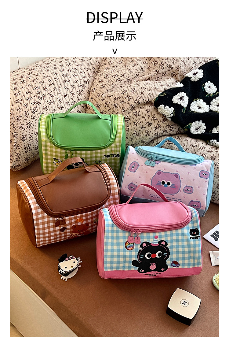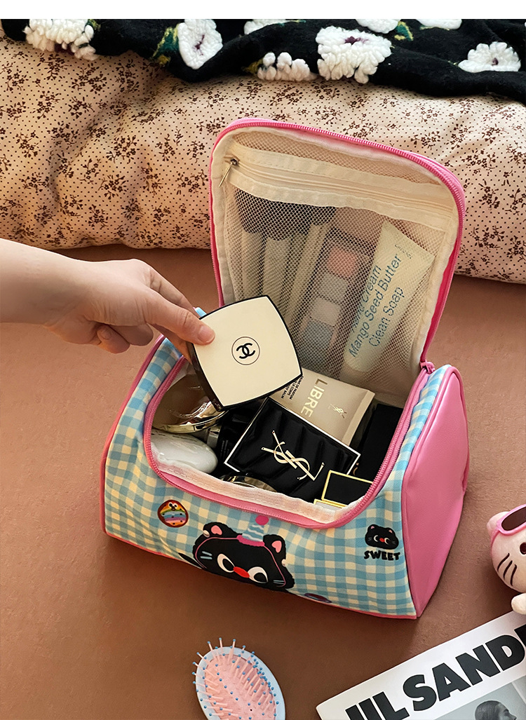 Bagos de maquillaje de gato portátiles de gran capacidad 2025 nuevos viajes lindos bolsa de almacenamiento de productos de lavado y cuidado de la piel