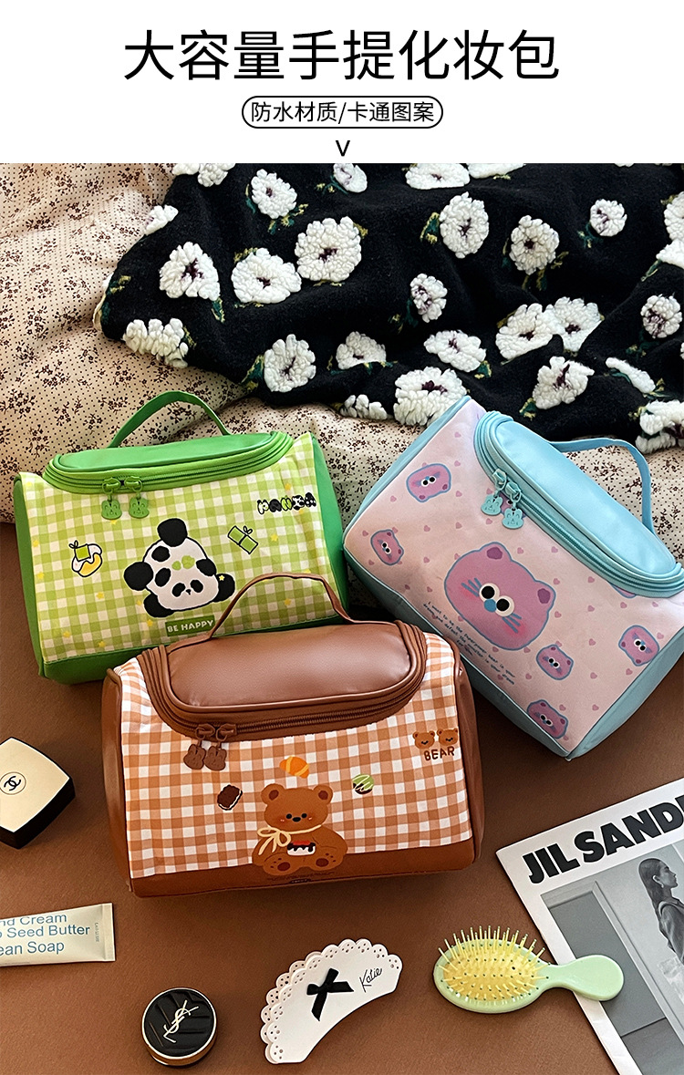 Gato a cuadros Rosa - bolso de maquillaje, oso a cuadros marrón - bolso de maquillaje, gato a cuadros azul - bolso de maquillaje, oso de bambú verde - bolso de maquillaje