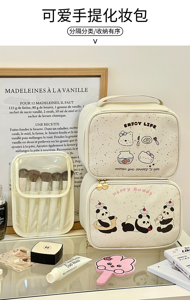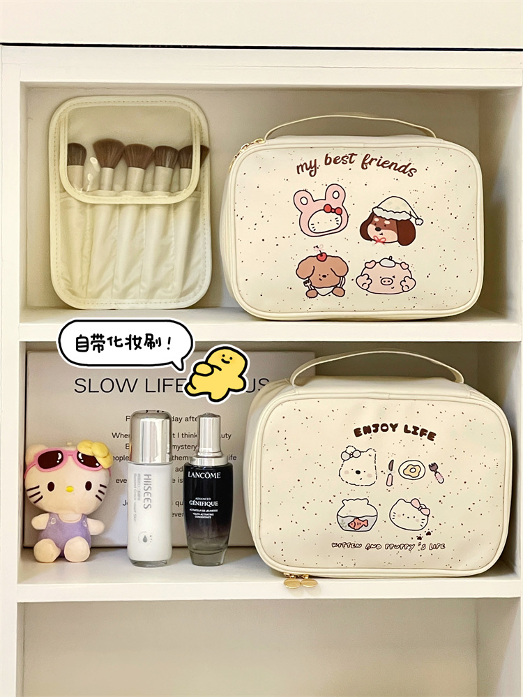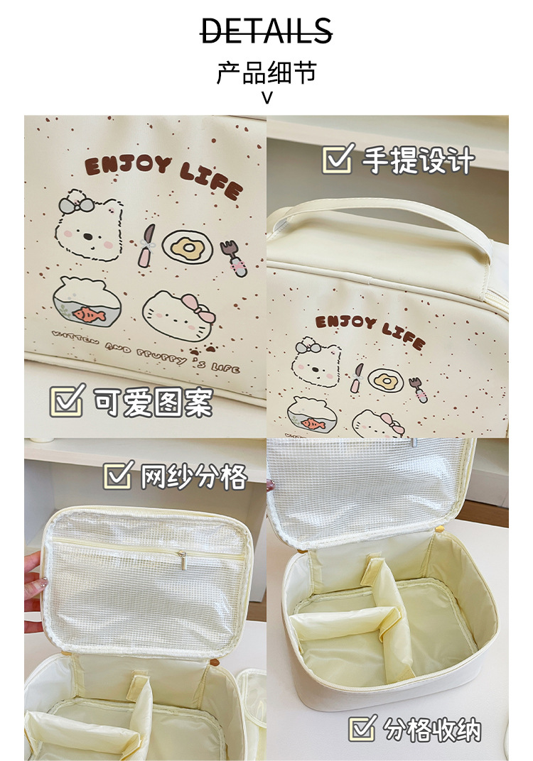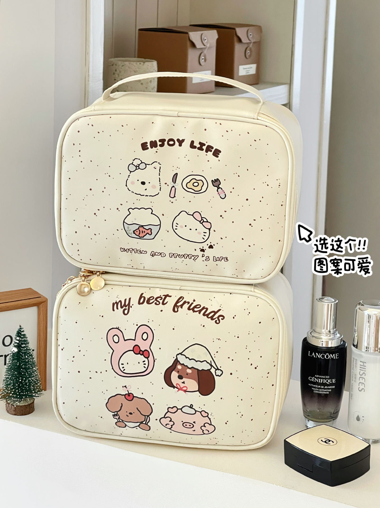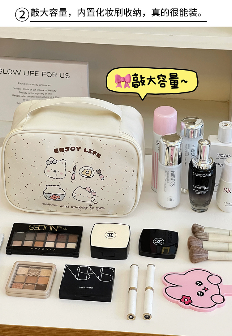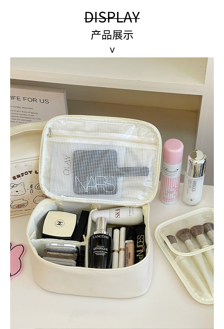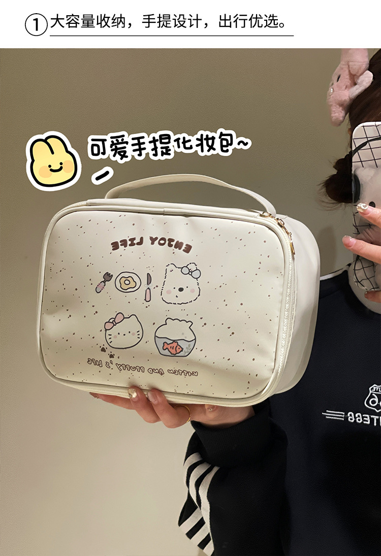 Bolsa de cosméticos original linda tridimensional de gran capacidad 2025 nueva bolsa de almacenamiento de partición portátil femenina bolsa de almacenamiento de cosméticos