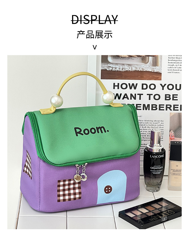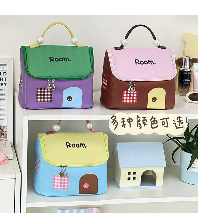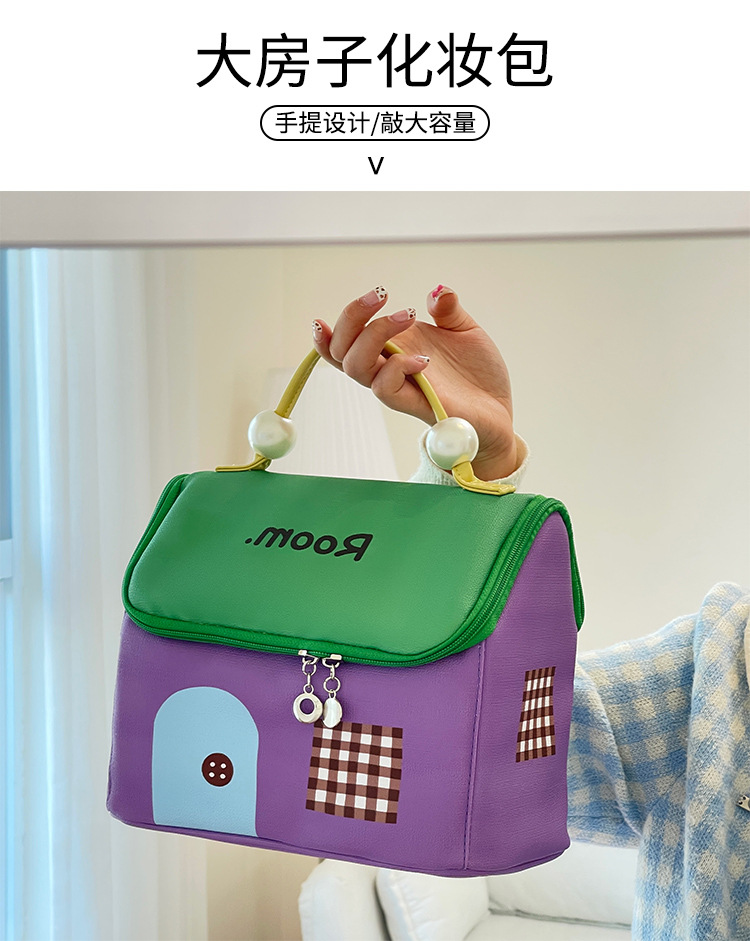 Bolsas de maquillaje de casa grande amarillo azul, bolsas de maquillaje de casa grande púrpura verde, bolsas de maquillaje de casa grande marrón rosa
