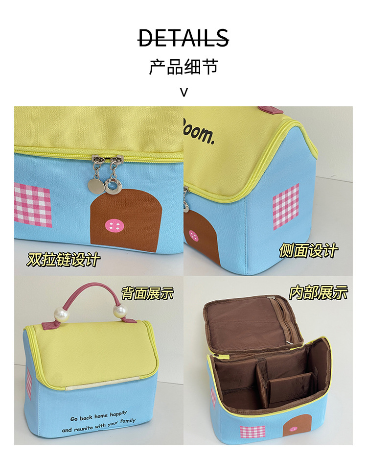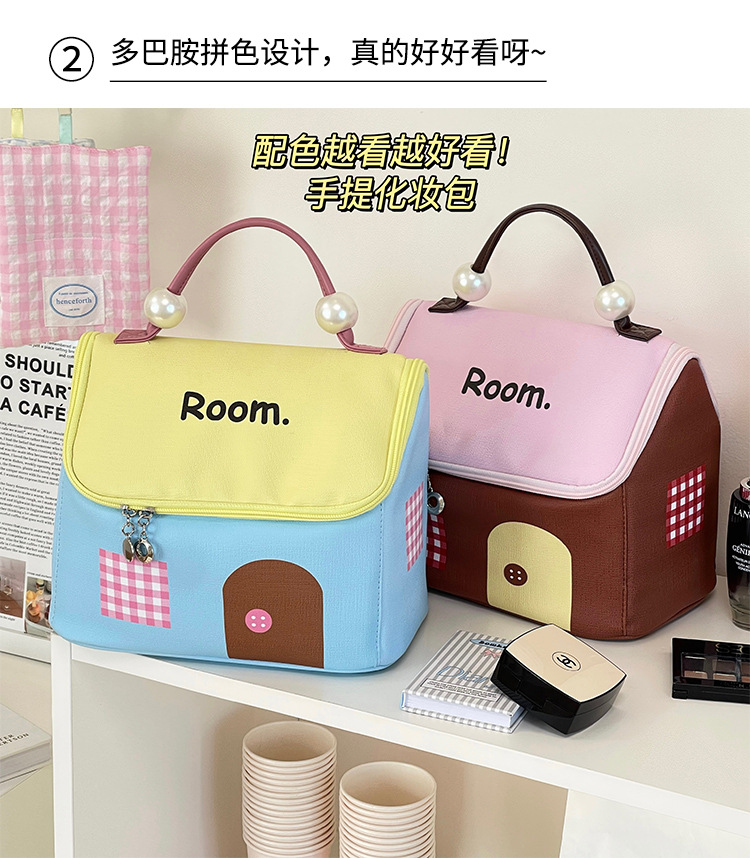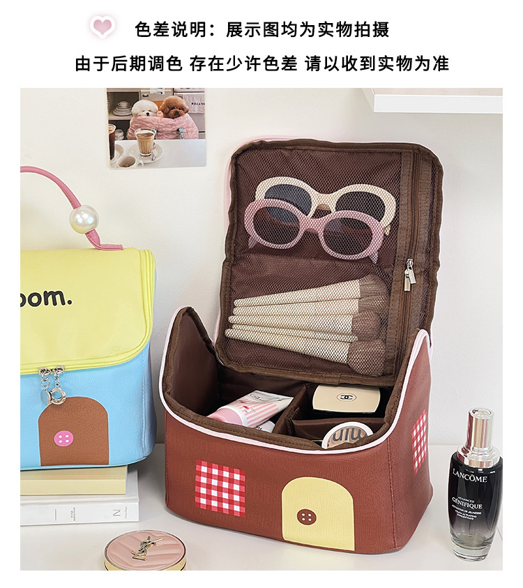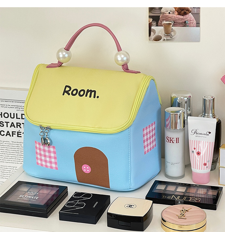 Nueva linda casa pequeña bolsa de maquillaje de alta belleza portátil bolsa de lavado de viaje bolsa de almacenamiento de gran capacidad