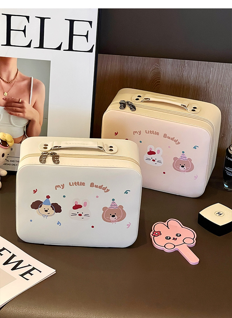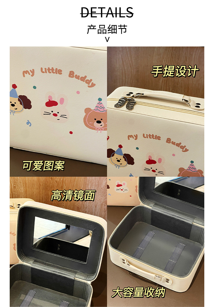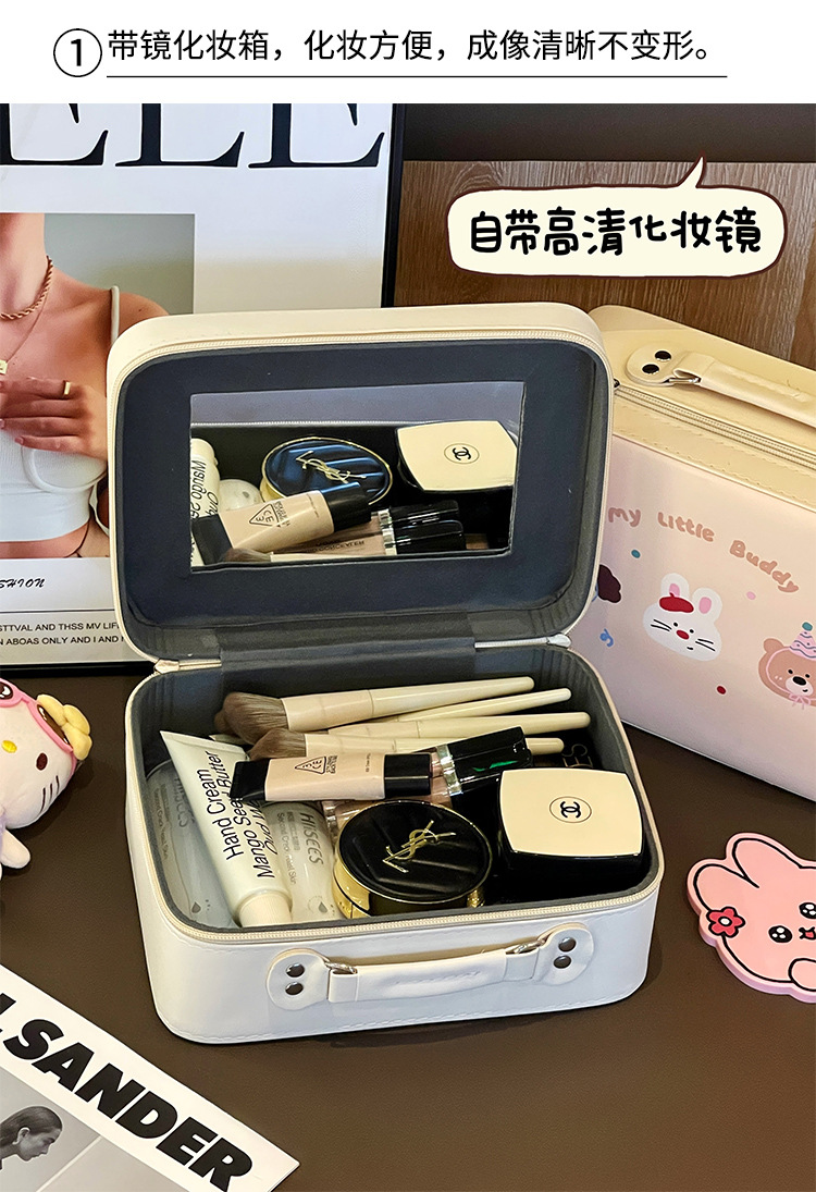 Cute bolso de maquillaje 2025 nuevo espejo caja de maquillaje portátil lavado maquillaje de gran capacidad bolsa de viaje de almacenamiento